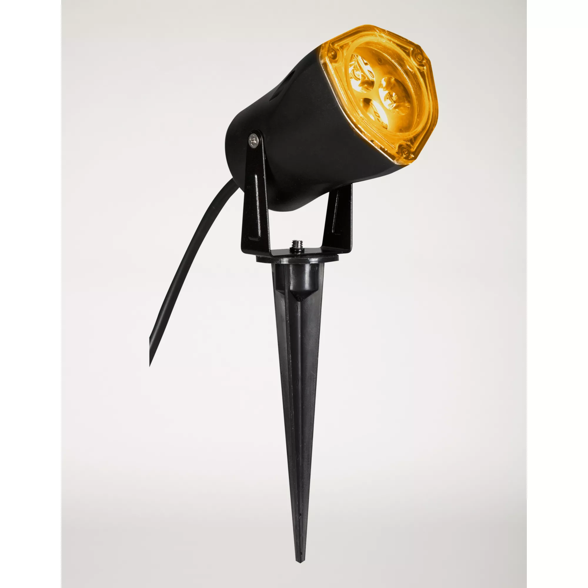Set the mood for your haunted house on Halloween when you decorate with the LED Orange Spot Light. This awesome, orange LED light comes with an AC adapter and it's attached to a stake for easy ground insertion.