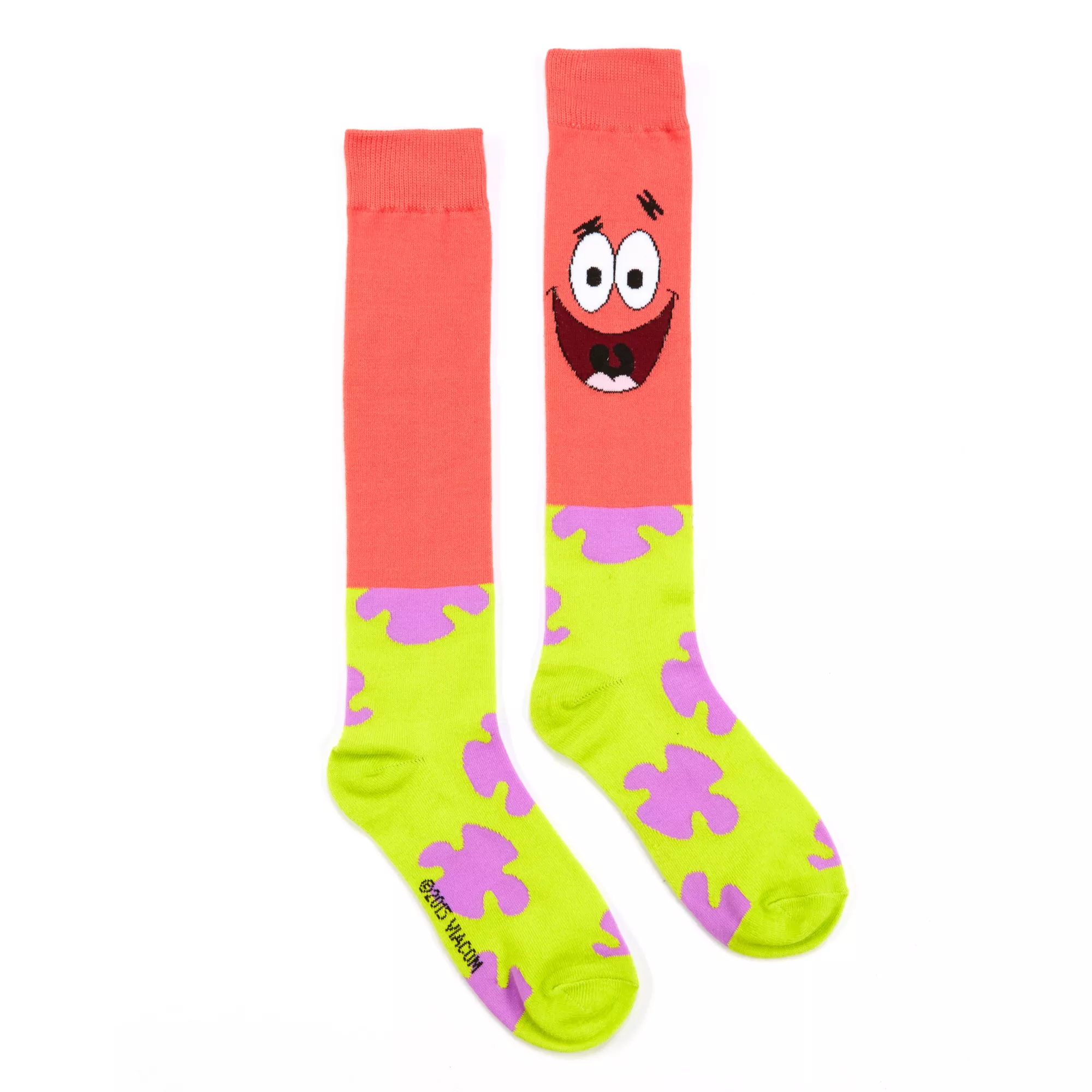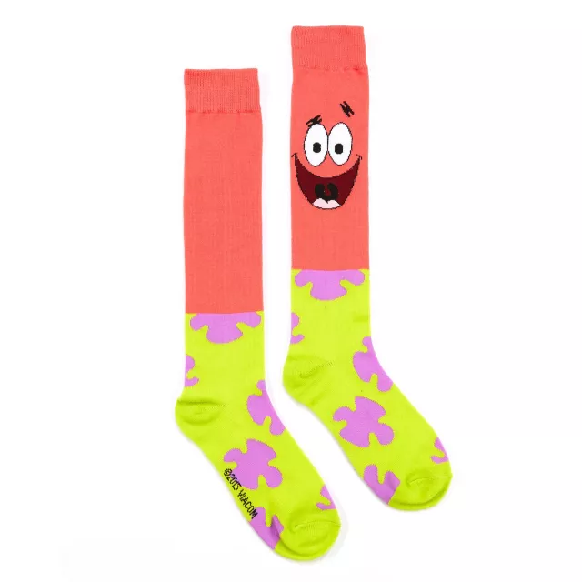 Rather than under a rock, Patrick Star can live on your feet this Halloween with these officially licensed Spongebob Squarepants Patrick Character Socks! These socks feature a bottom half that matches Patrick's green and purple shorts with a pink top featuring Patrick's smiling face!