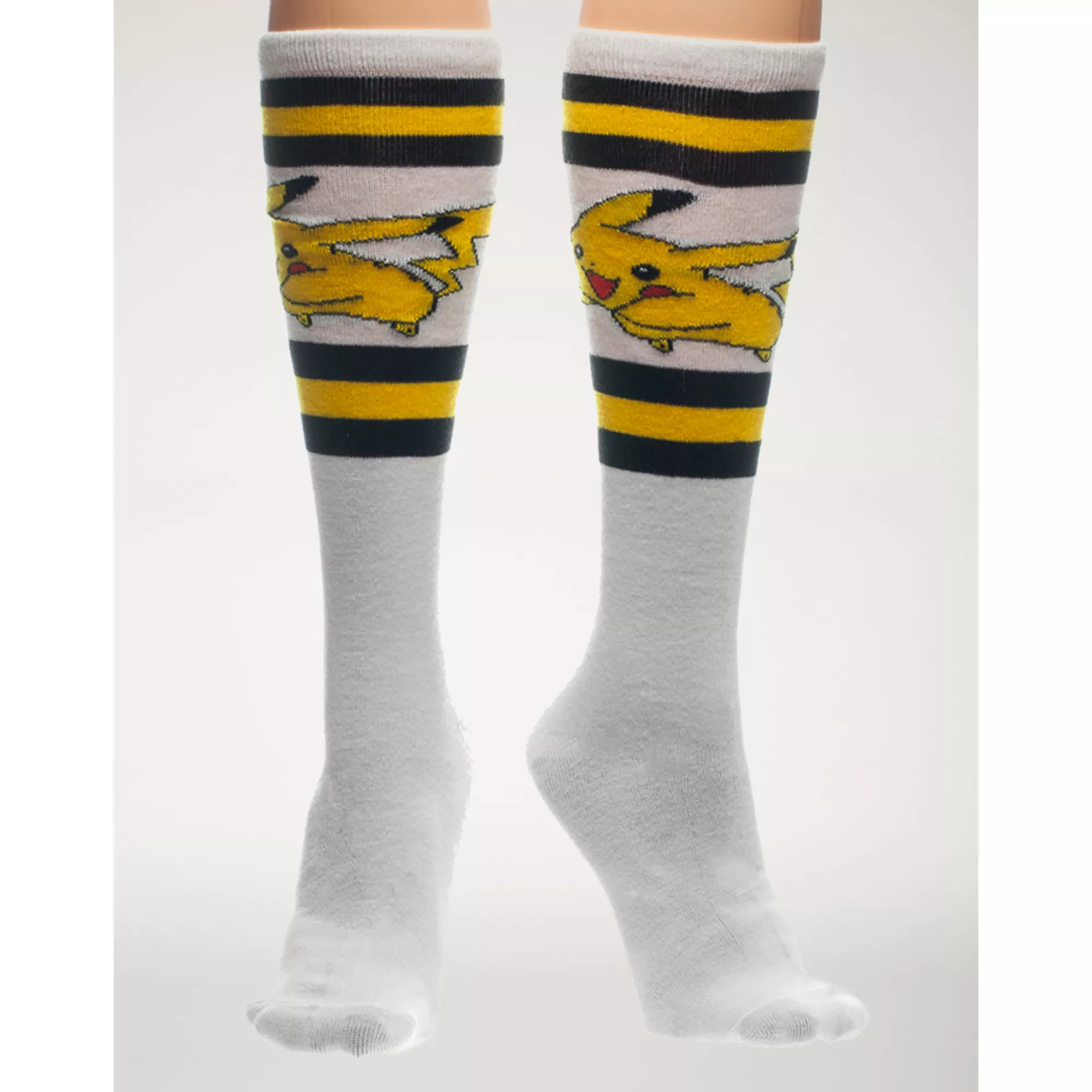 Gotta catch em' all in the Officially Licensed Pikachu Knee-High Sock, you can adventure to obtain as many Pokemon as you desire. These socks feature yellow and black bands with a jubilant, running Pikachu graphic.