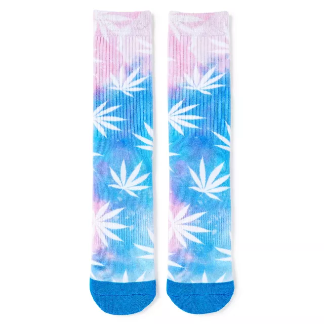 Make your everyday look stand out with this pink and blue weed leaf crew socks! You'll surely get lots of compliments when everyone checks out your footwear.