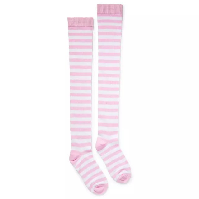 Pink and White Striped Knee High Socks