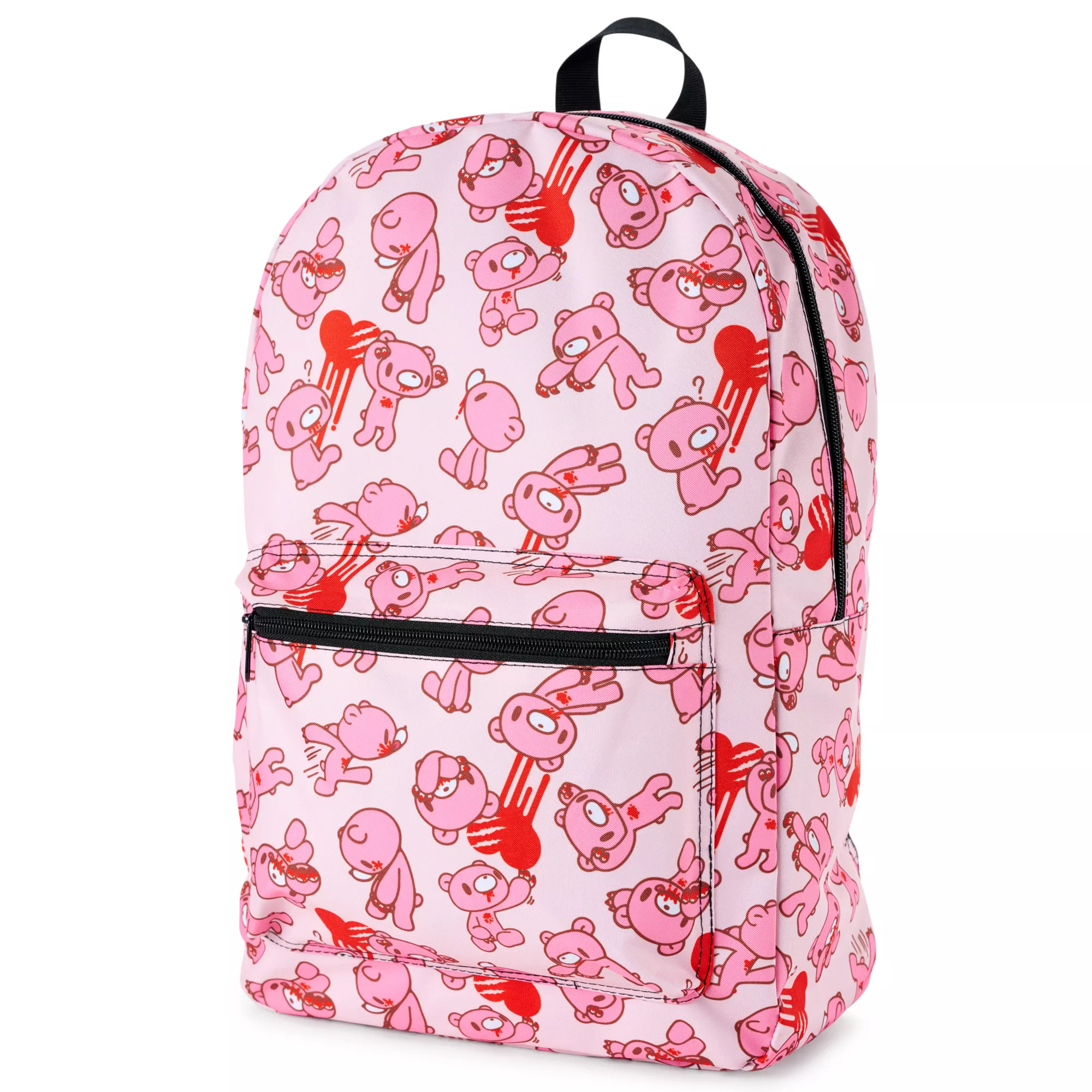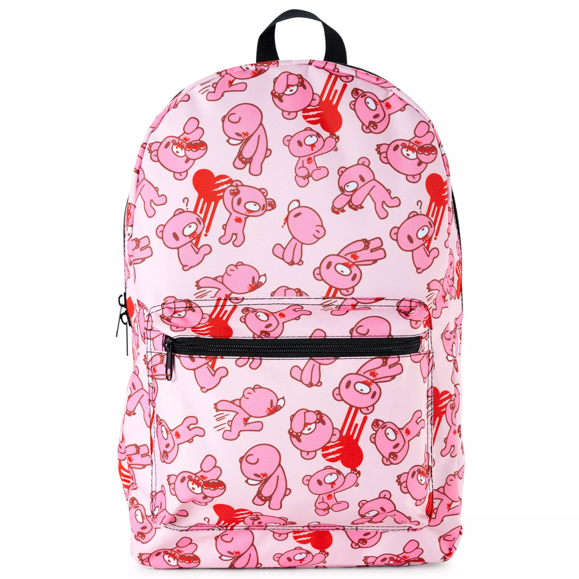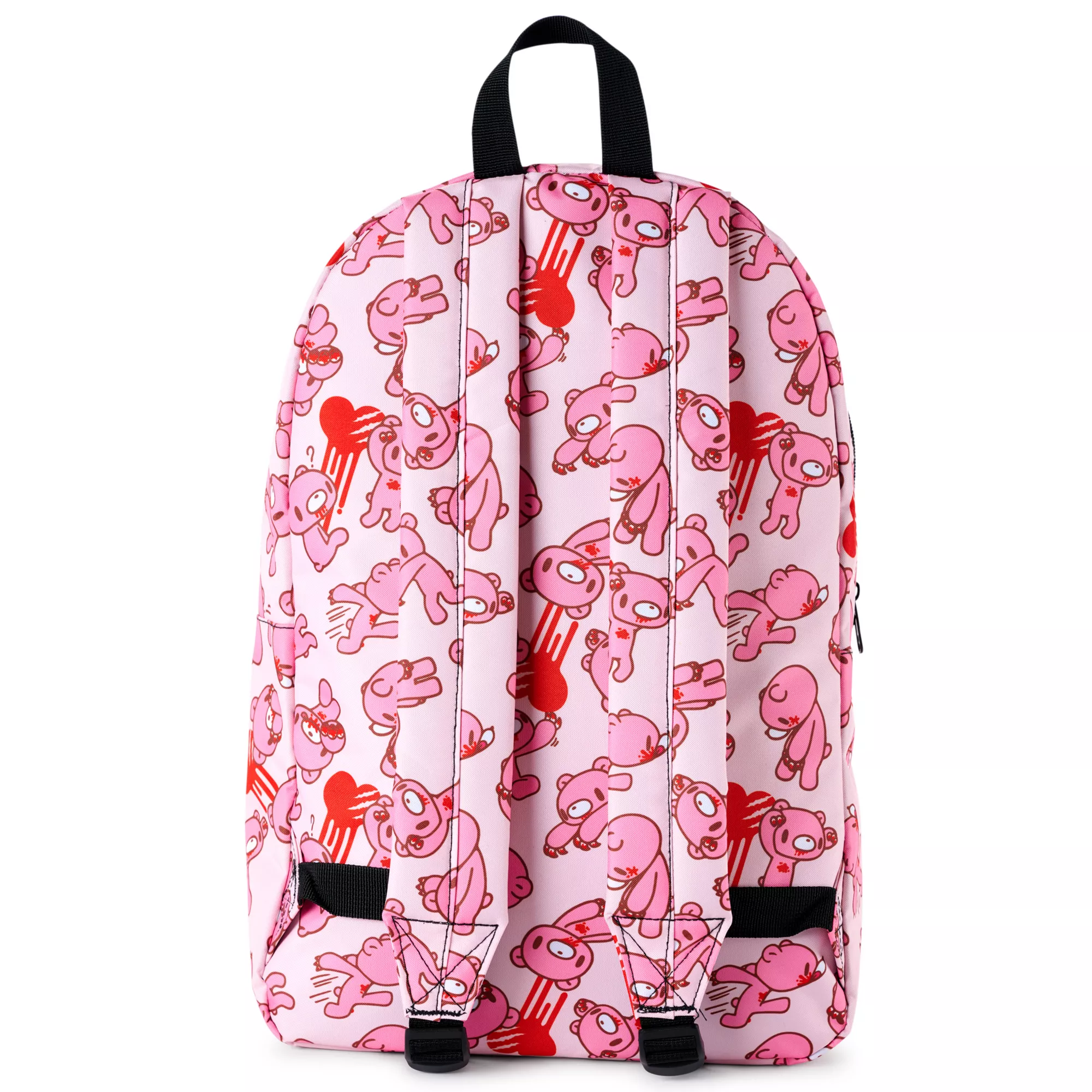 Your favorite bloody bear is here with the perfect backpack for you! This pink Gloomy Bear backpack features an all-over pink and red Gloomy Bear print, a front zipper pouch, and a spacious zip-closure main pouch.