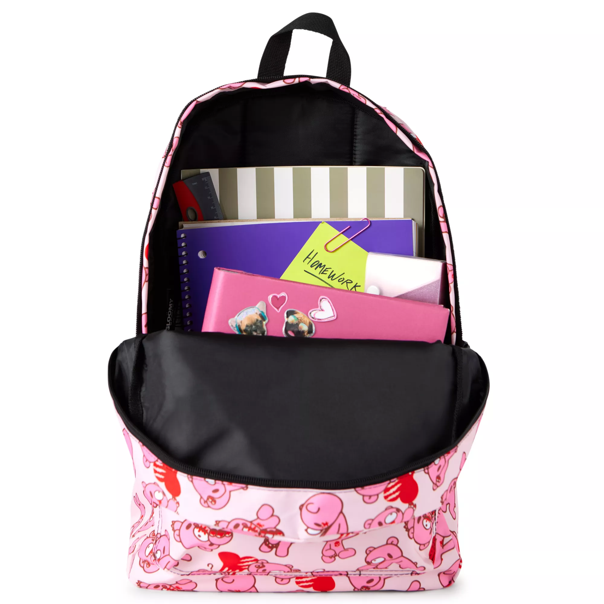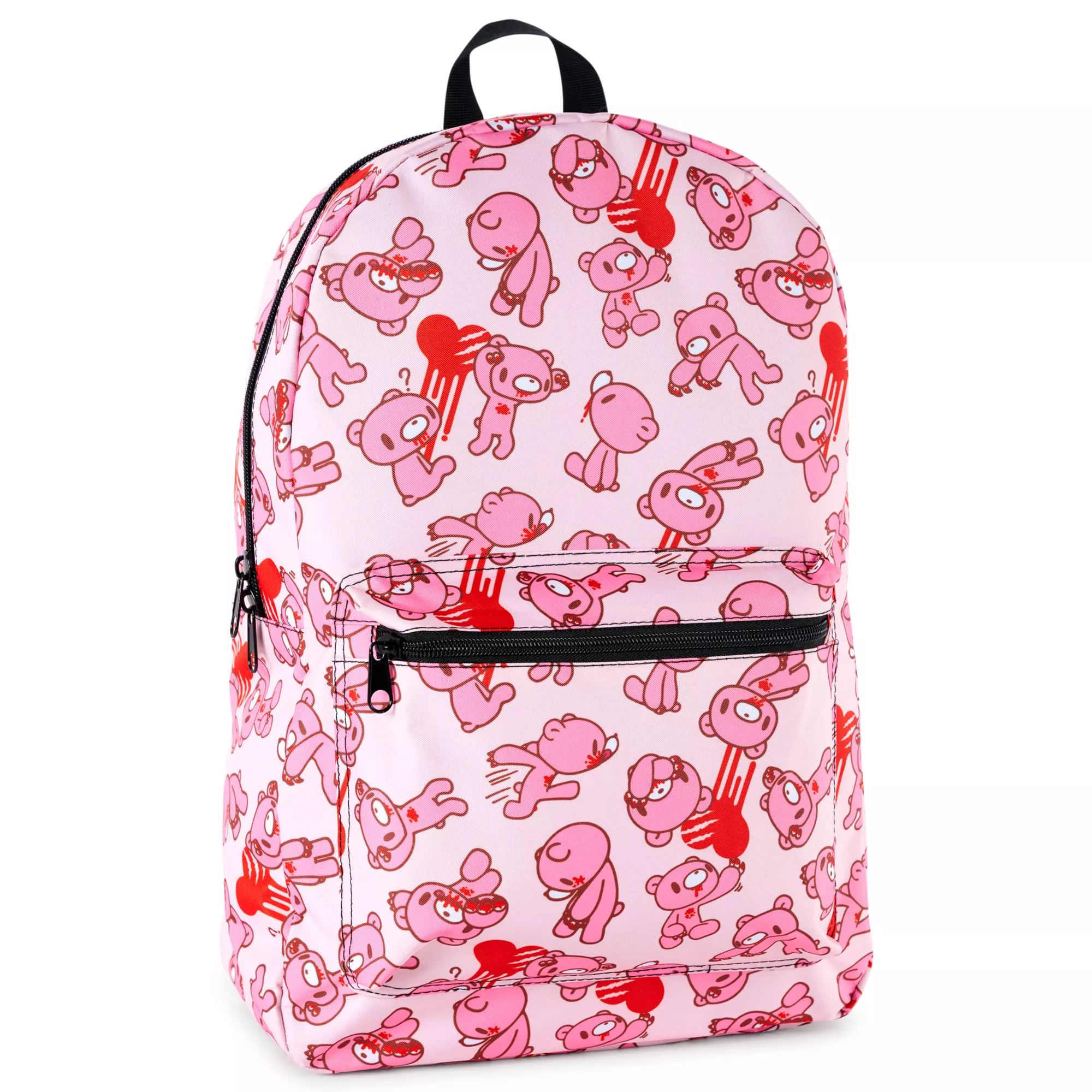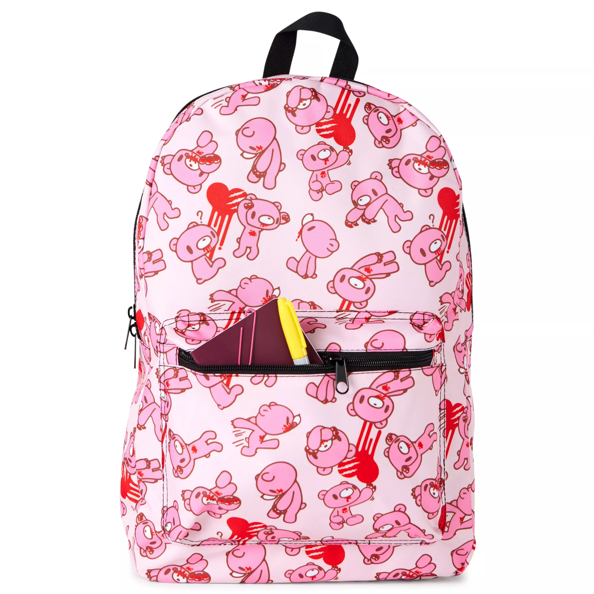 Your favorite bloody bear is here with the perfect backpack for you! This pink Gloomy Bear backpack features an all-over pink and red Gloomy Bear print, a front zipper pouch, and a spacious zip-closure main pouch.