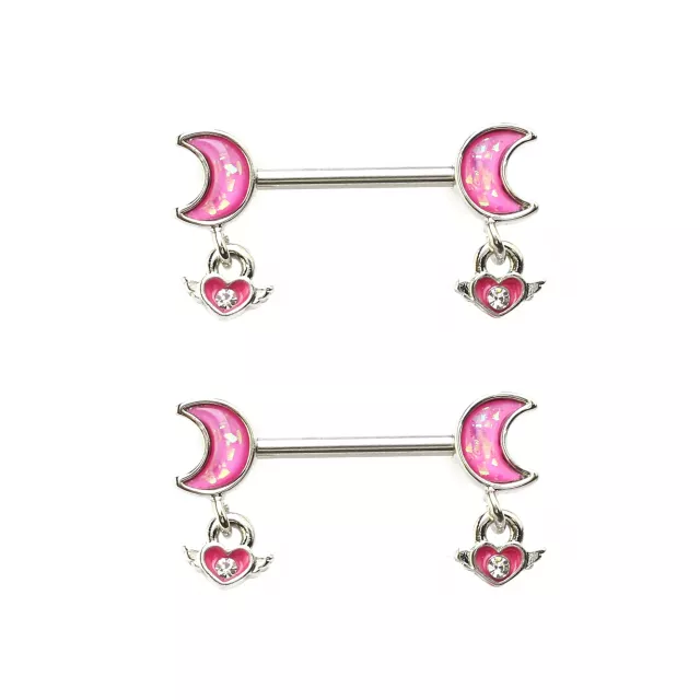 Pink Moon Dangle Nipple Barbells - 16 Gauge