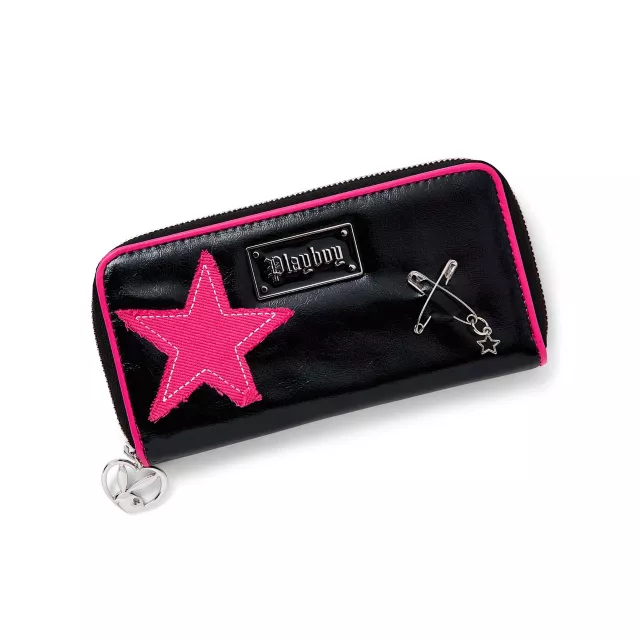 Elevate your look when you style this exclusive Playboy Large Star Patch and Safety Pin Zip Wallet! Its grungy decals are perfect for giving your outfit a little extra edge.