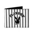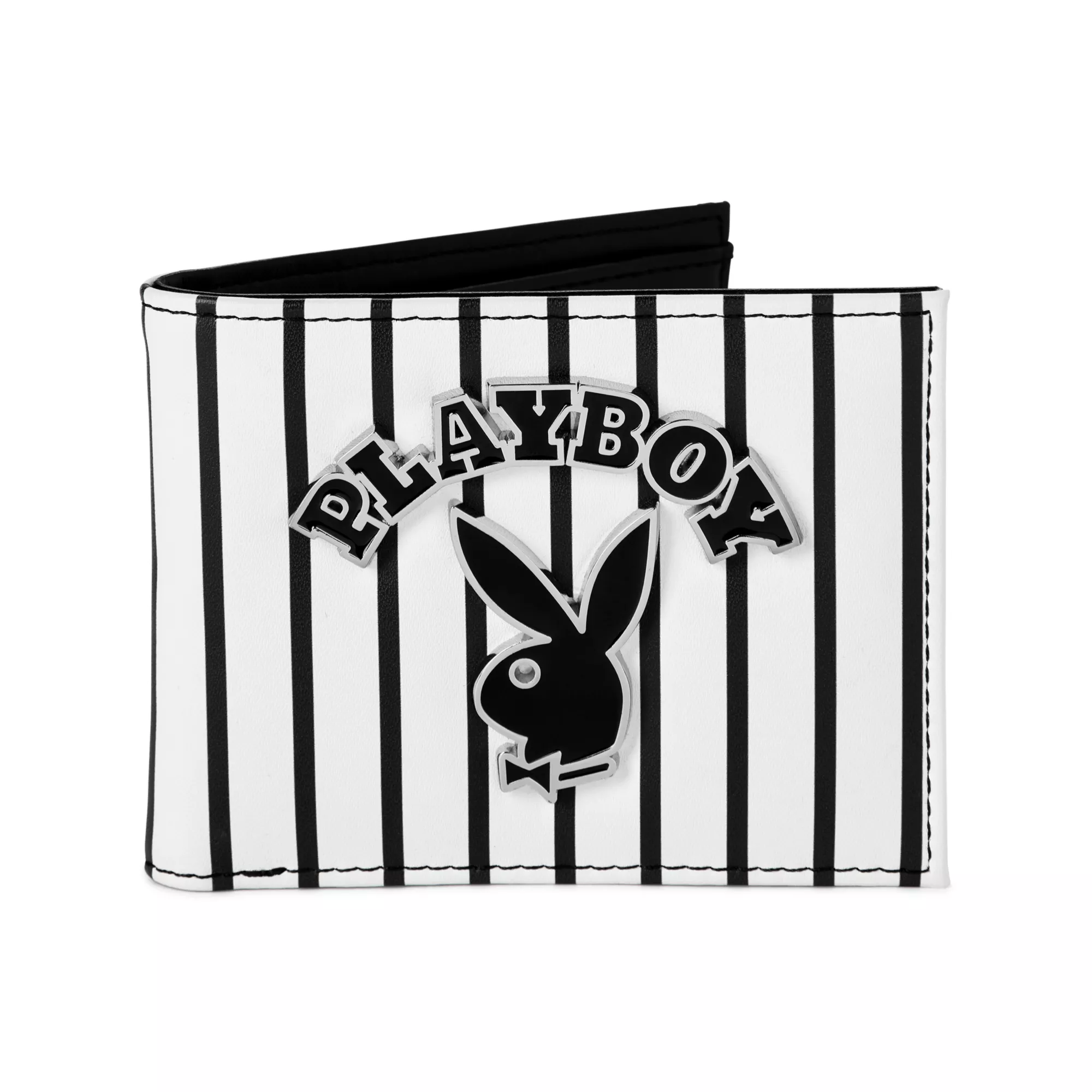Choose the Playboy life and carry your cash and cards in style when you get yourself this Black and White Playboy Pinstripe Bifold Wallet. Featuring a black Playboy Bunny decal on the front, you'll always be flaunting your love for Playboy when you keep this wallet on you.