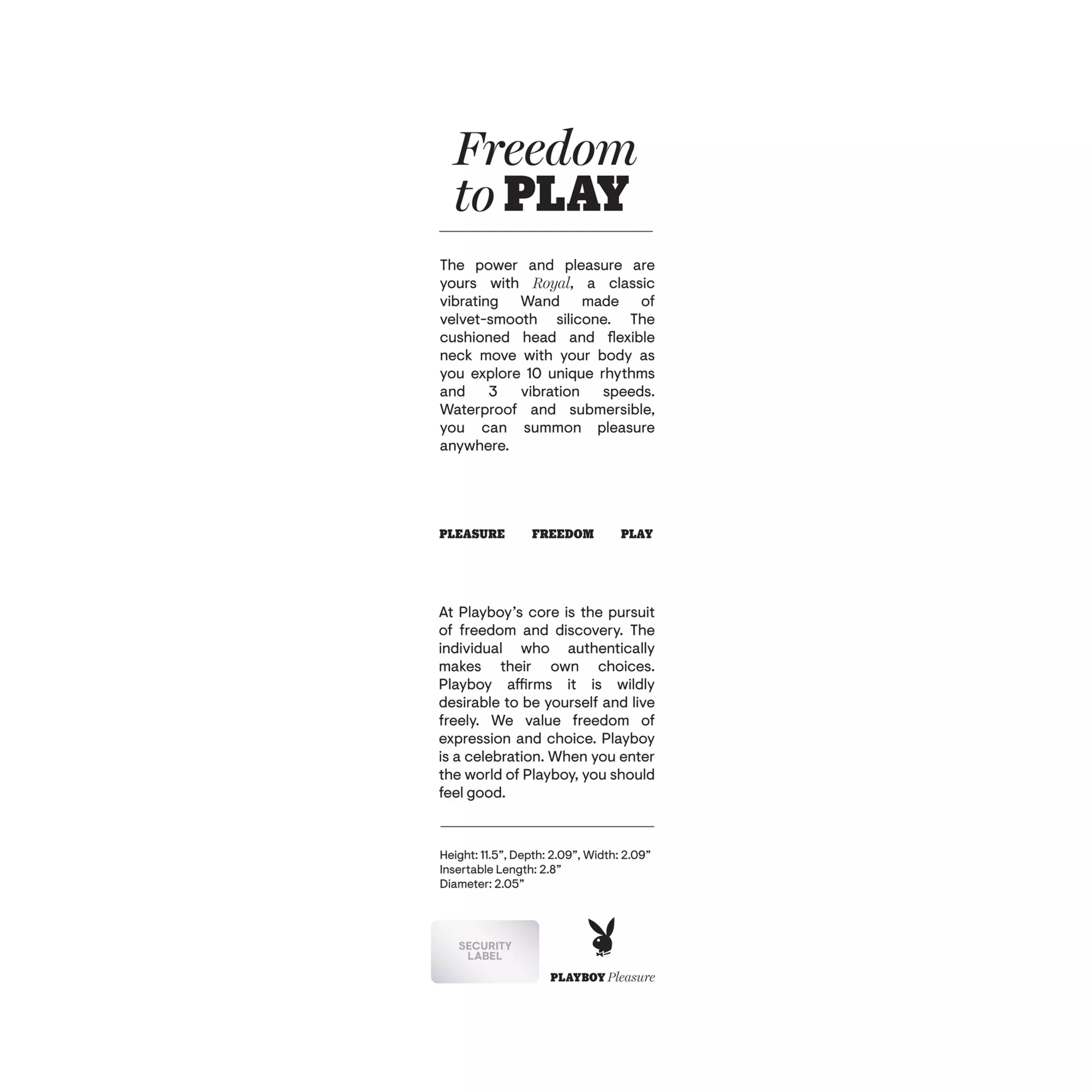 Feel like sexy royalty with this 10-function Playboy Pleasure Royal wand massager! This powerful sex toy delivers clitoral stimulation that's sure to thrill you every time you use it. This massager is sure to become your new fave in the bedroom once you discover how good it feels.