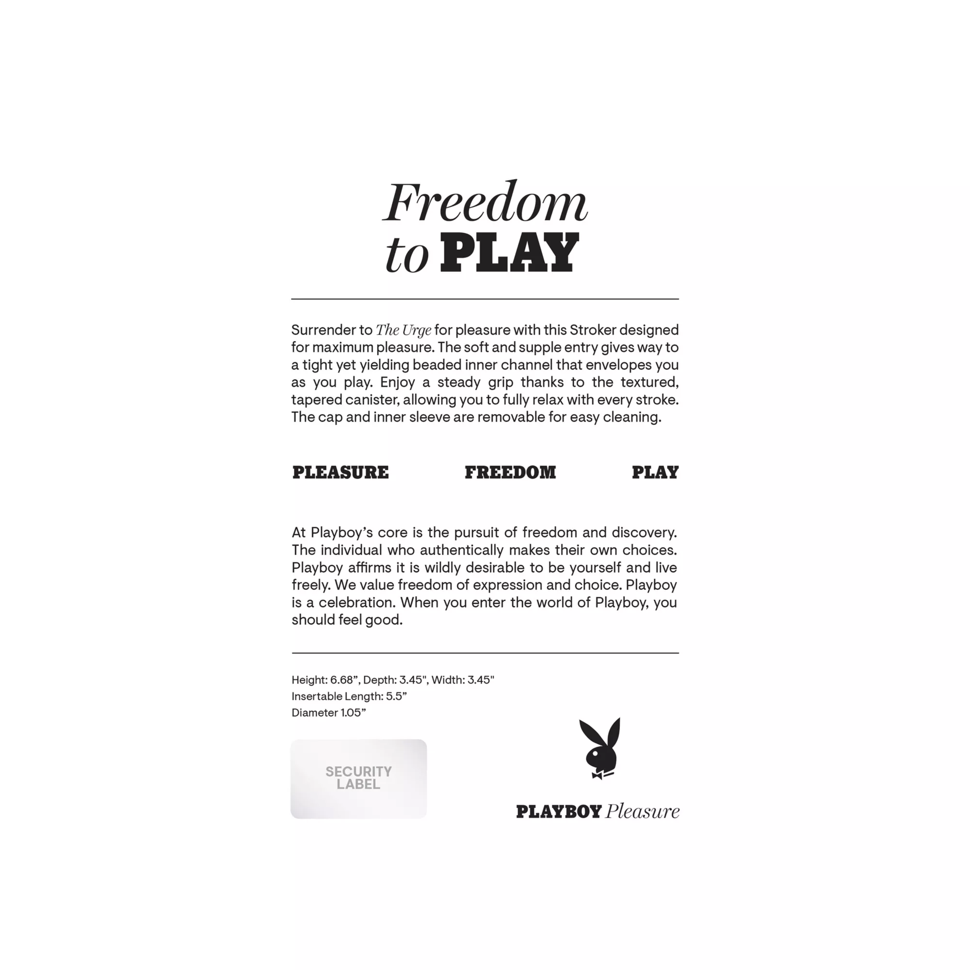 Make yourself feel incredible every time you use this Playboy Pleasure The Urge Small Stroker! This powerful male masturbator with internal nubs for extra stimulation is the perfect sex toy when you're in the mood. Let it squeeze your shaft tight and deliver explosive pleasure whenever you use it!