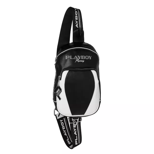 Searching for a bag that combines style and convenience? Look no further than this officially licensed Playboy Racing Crossbody Sling Bag, crafted with high-quality black and white polyurethane for a sleek design. This accessory features a front zipper pocket, the iconic Playboy Racing logo, and an adjustable strap for comfort on the go.