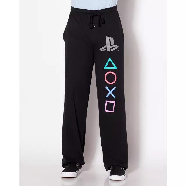 Make your love of gaming part of your wardrobe with this official Playstation pants! These comfortable black pants feature the Playstation logo and triangle, circle, X and square button images, and are perfect for any gamer.