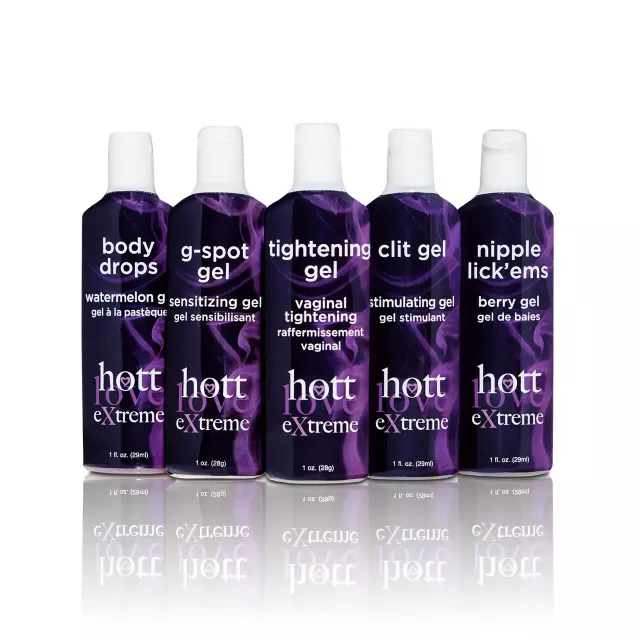 Improve your sex life easily with this Hott Love Extreme Pleasure for Her set! This five pack of sexual enhancement gels includes body drops, G-spot gel, vaginal tightening gel, clit gel and nipple lick 'ems. All her intimate body parts will get the right kind of attention when you use these sex gels. Use them to mix things up in the bedroom and make sex even hottter!