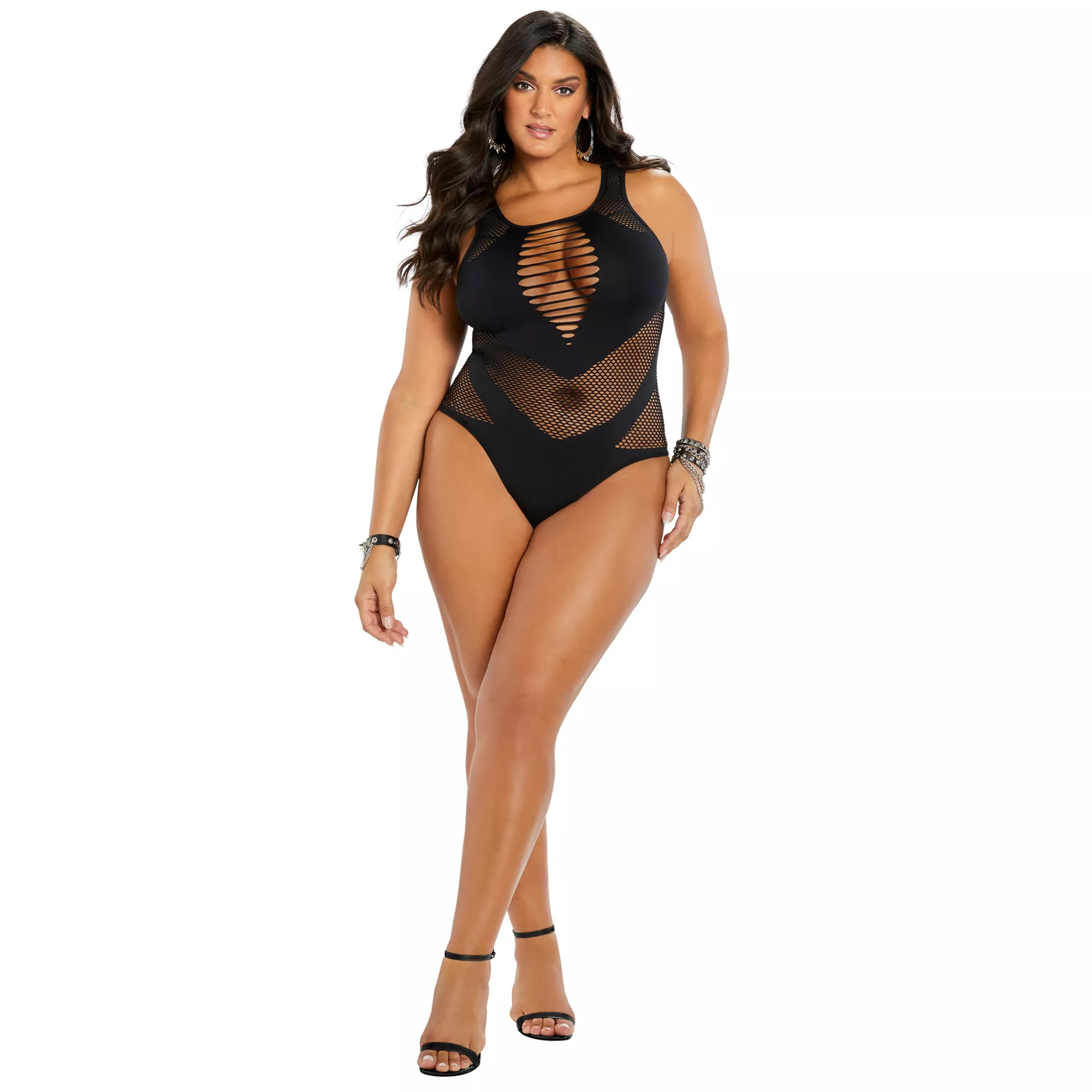 This smokin' hot black plus size strappy mesh seamless bodysuit will let your lover know you're ready to steam things up! Bust this sexy and revealing number out in the bedroom and you're in for a night of passion.