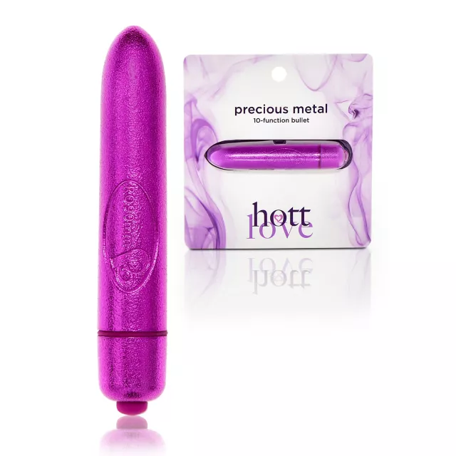 Enjoy portable pleasure with this colorful and powerful 10 Function Precious Metal purple glitter waterproof bullet vibrator! You're in charge when you have all those speeds to choose from, so you can make the vibe go as fast or slow as you desire. For a sex toy that's sure to bring you excitement in the bedroom, check this out.