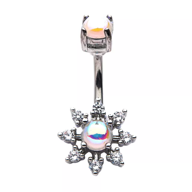 Prong CZ Flower Belly Ring - 14 Gauge