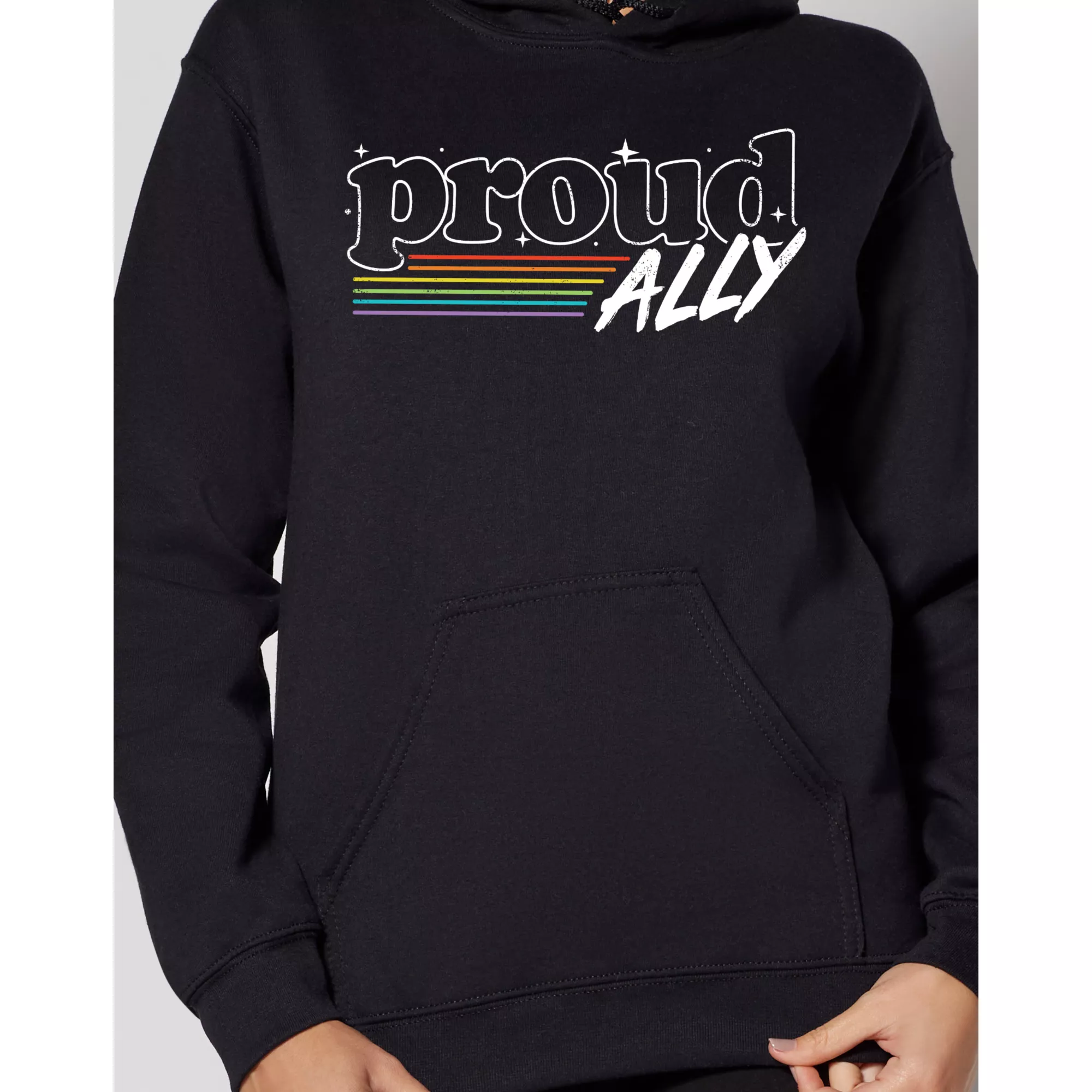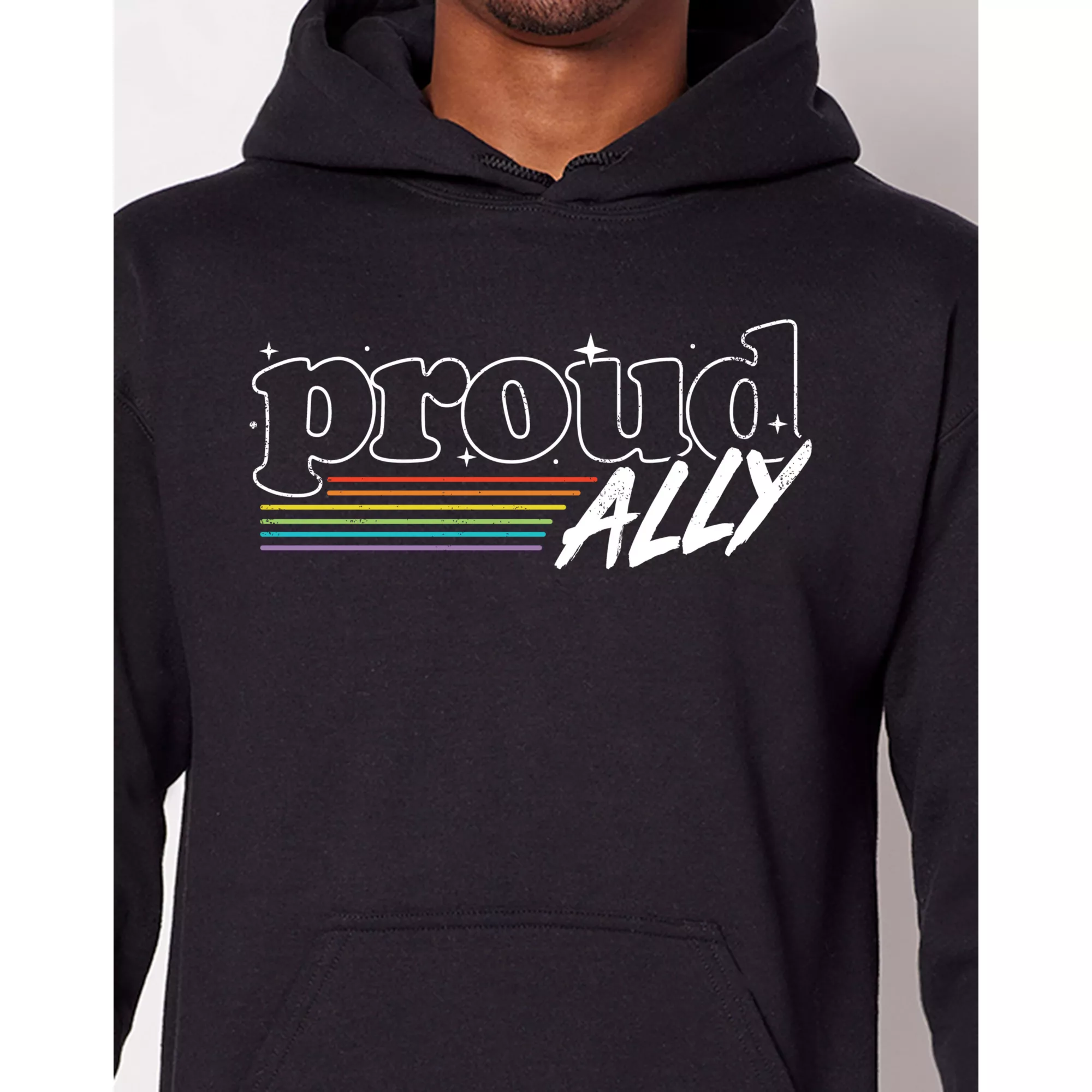 Celebrate pride in style by rocking this Proud Ally Hoodie as part of your look wherever you go! This stylish hoodie is the perfect way to fit right in at any pride event and show you're all about being an ally to the pride community.