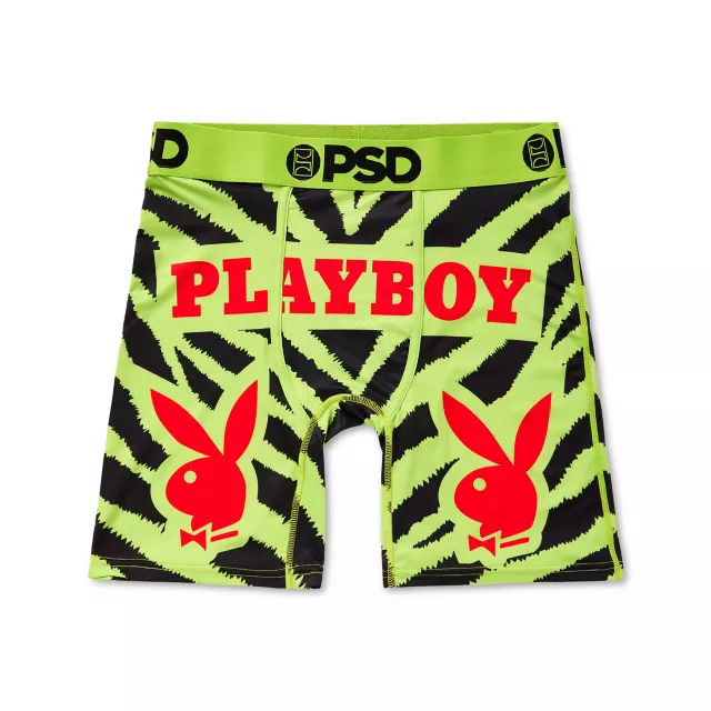 Take your boxer game to the next level with these exclusive, officially licensed PSD Neon Zebra Print Playboy Boxers! Suit up in these stylish black and green boxers and you'll always be dressed to impress.