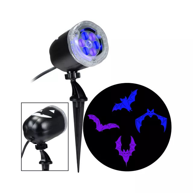 Light up the night this Halloween with this Purple Bat Light Projector! Simply plug this projector in, and you'll be conjuring up a swarm of bats before your very eyes.