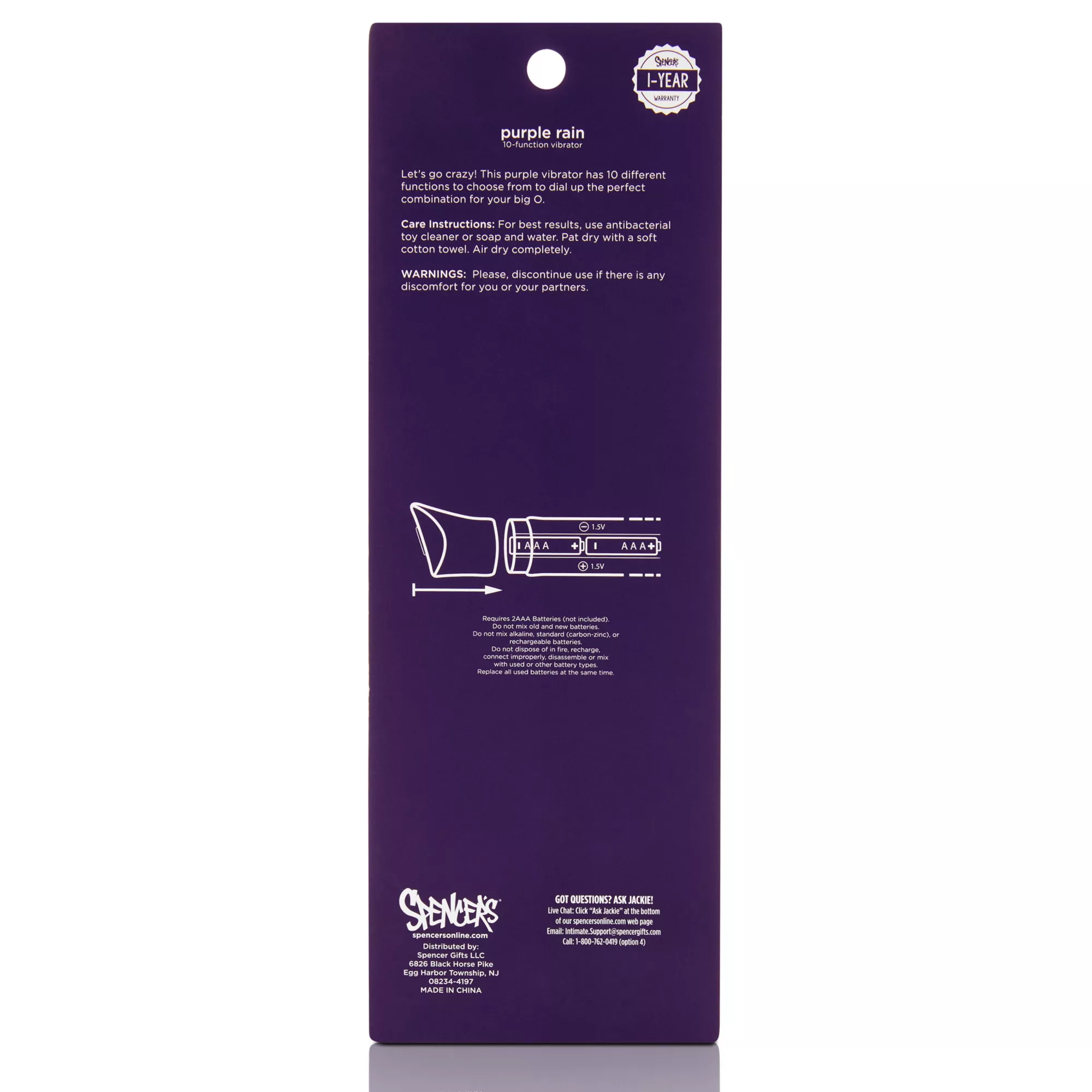 Cozy up in the bedroom for an sheet-gripping session of solo play when you decide to use this Purple Rain Multi-Function Vibrator. This vibrator features up to ten different speed functions for optimum pleasure and will be sure to make things hot whether you're alone or using it with a partner. Explore and satisfy your every need in no time at all once you begin to use this purple rain vibrator.