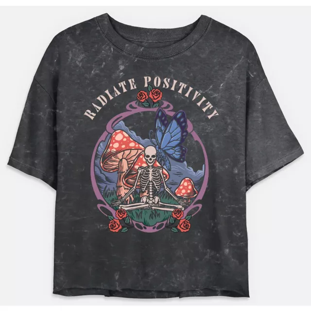 Spread the good vibes and radiate positivity anywhere you go while wearing this Radiate Positivity Skeleton T Shirt. Anyone looking to totally impress with their next outfit will love owning this stylish skeleton t shirt and it's sure to put you in a positive mood.