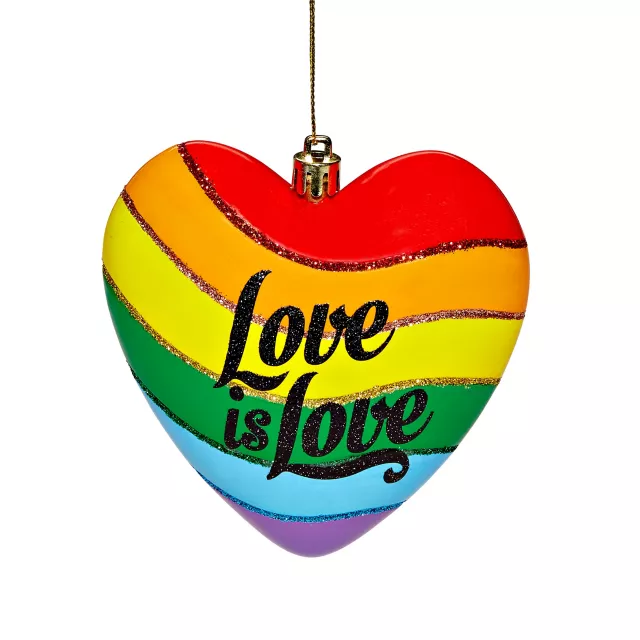 Add a little bit of color to your Christmas tree when you hang this heart-shaped love is love ornament! Be you, be proud, and have an outrageous Christmas!