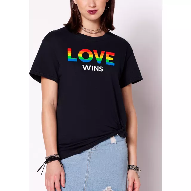 Show off your pride when you hit the town rocking this Rainbow Love Wins Tee. This stylish tee is a fun way to add some personality to any casual look and is sure to make some heads turn on your journey.