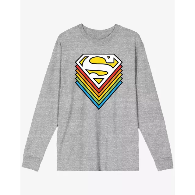 Rock a look that's stylishly super with this officially licensed Rainbow Superman Logo Long Sleeve T Shirt! Suit up in this iconic Superman top and everyone will know that you're the ultimate comic book fan.