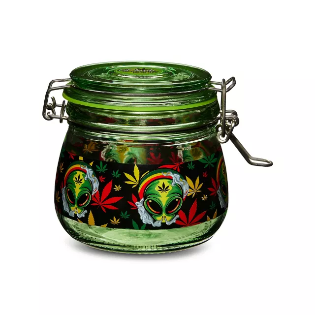 Store your medication in alien style with this Rasta Alien Stash Jar. With this stash jar in your possession you'll always keep your green smelling fresh and ready for use.