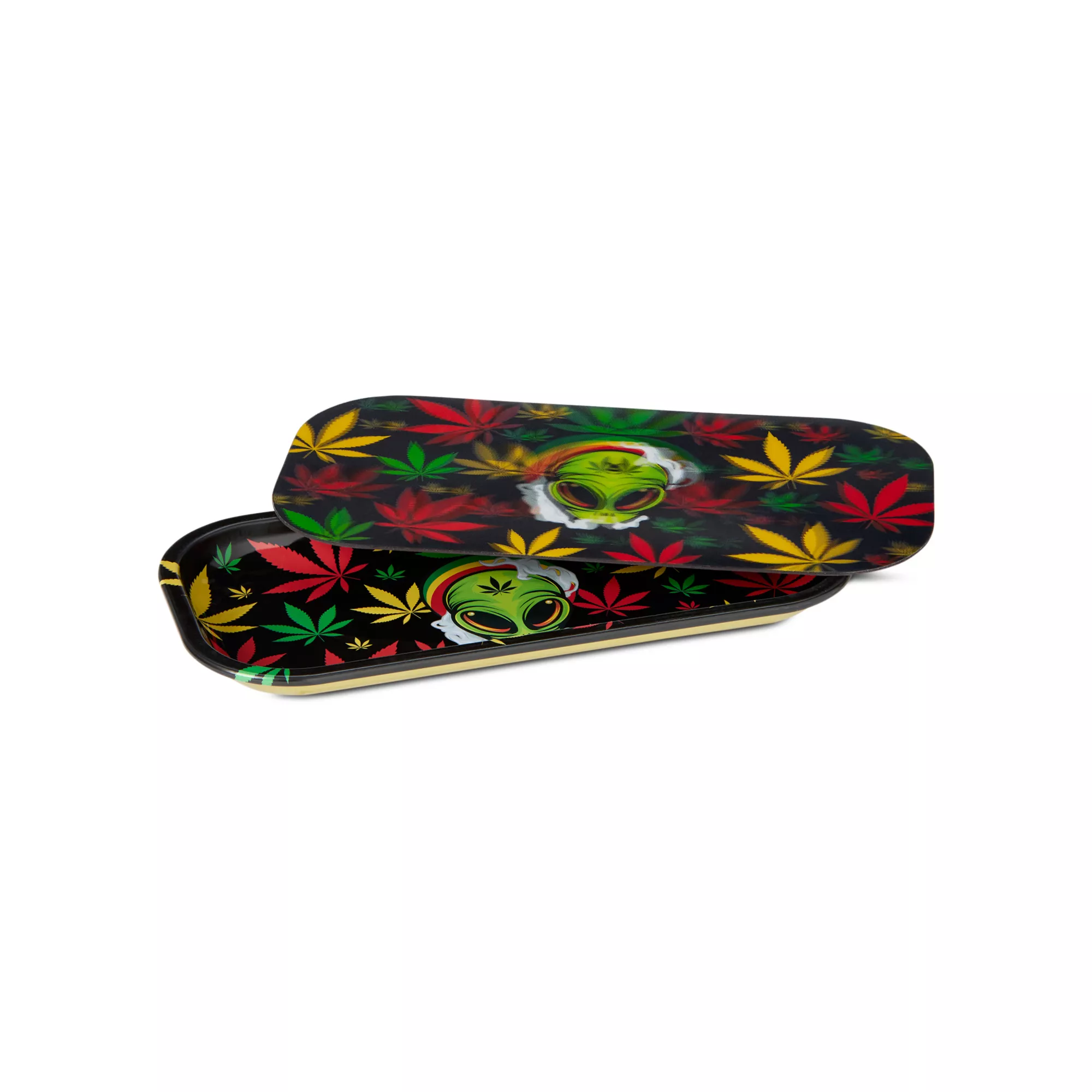 It's high time you upgraded your decor with this rasta weed leaf alien tray! This tray has a flat surface with a fun design that'll make the perfect addition to your home.