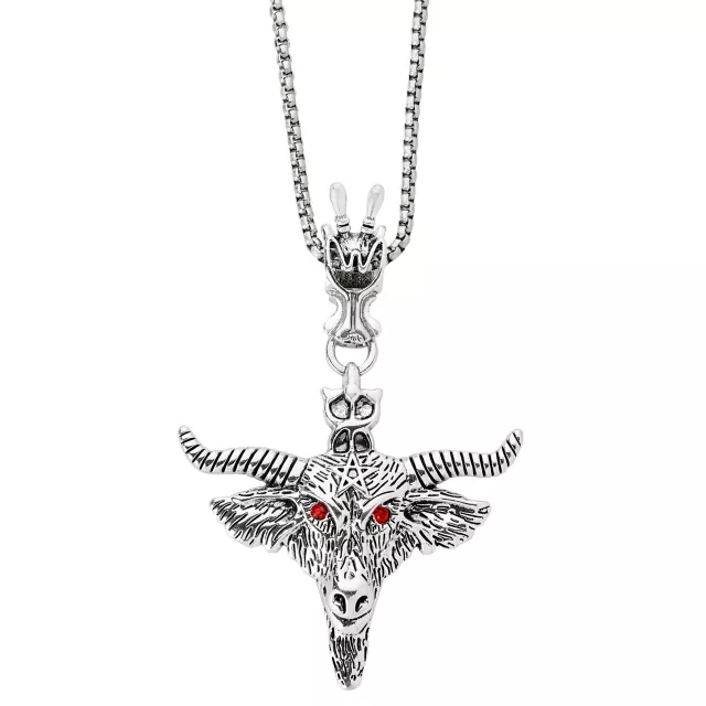 Red CZ Baphomet Pendant Chain Necklace