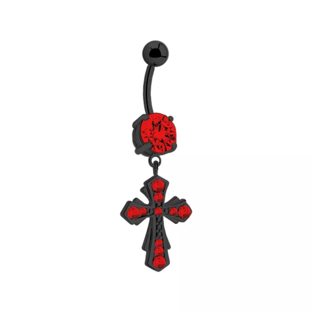 Red CZ Black Cross Titanium Dangle Belly Ring - 14 Gauge