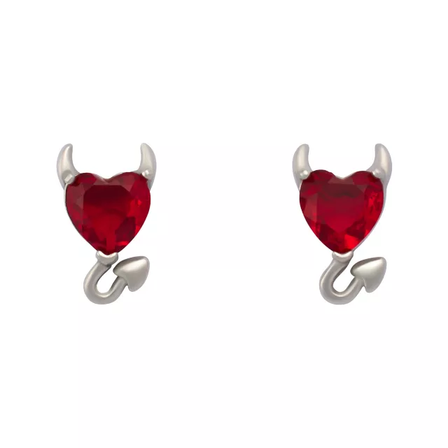 Red CZ Devil Heart Stud Earrings - 20 Gauge