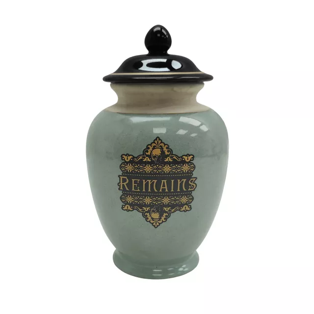 Create a haunting display with this Remains Urn tabletop decoration. This urn decoration is perfect for your shelf, altar, or mantel.