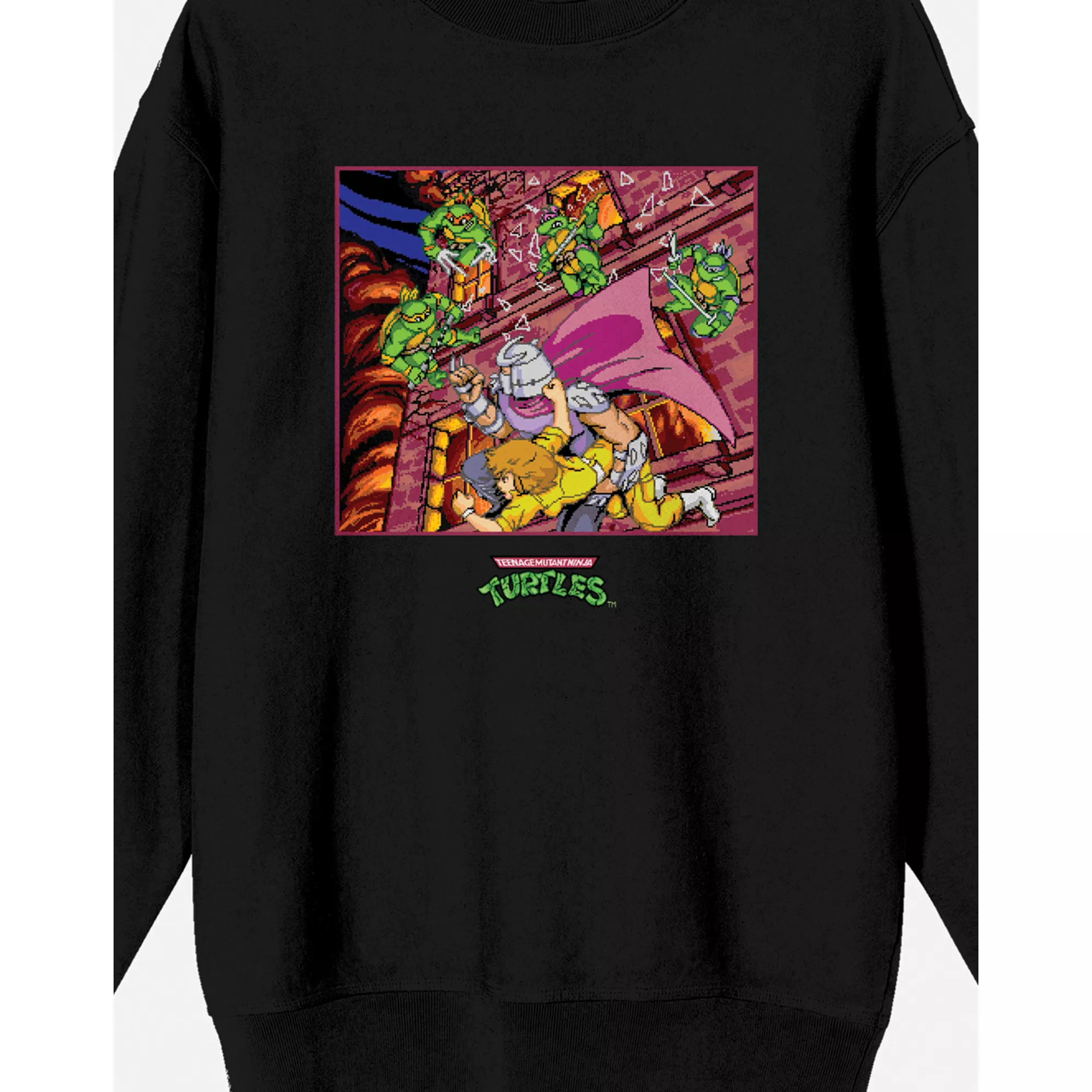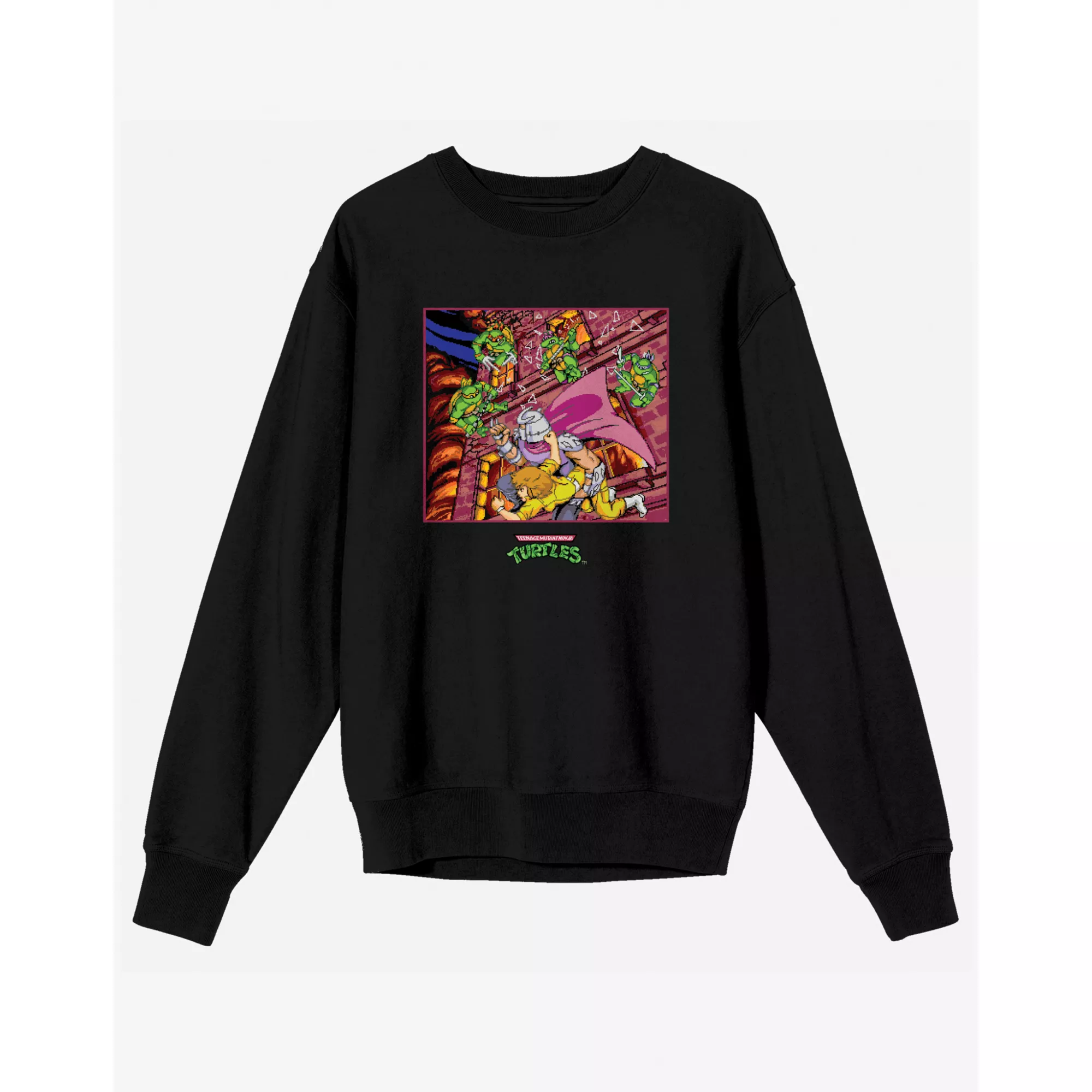 This black crewneck sweatshirt features an action-packed graphic showing the Teenage Mutant Ninja Turtles attempting to rescue April. Add this cozy sweatshirt to your collection to elevate your style!