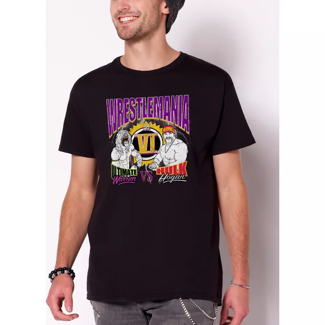 Consider yourself the ultimate fan of the WWE? Gear up in this officially licensed Retro Wrestlemania VI T Shirt and everyone will know you’re the real deal! You’ll love rocking this comfortable tee on the couch the next time you sit down to watch this classic showdown between Hulk Hogan and The Ultimate Warrior.