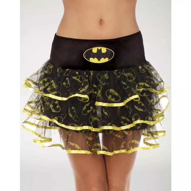 Make you look sassy as you take down the bad guys in this officially licensed Ribboned Batgirl DC Comics Tutu Skirt! The Gotham hero themed skirt features the Batman emblem on the front, as well as on the tulle layers and pretty yellow ribbon accents.