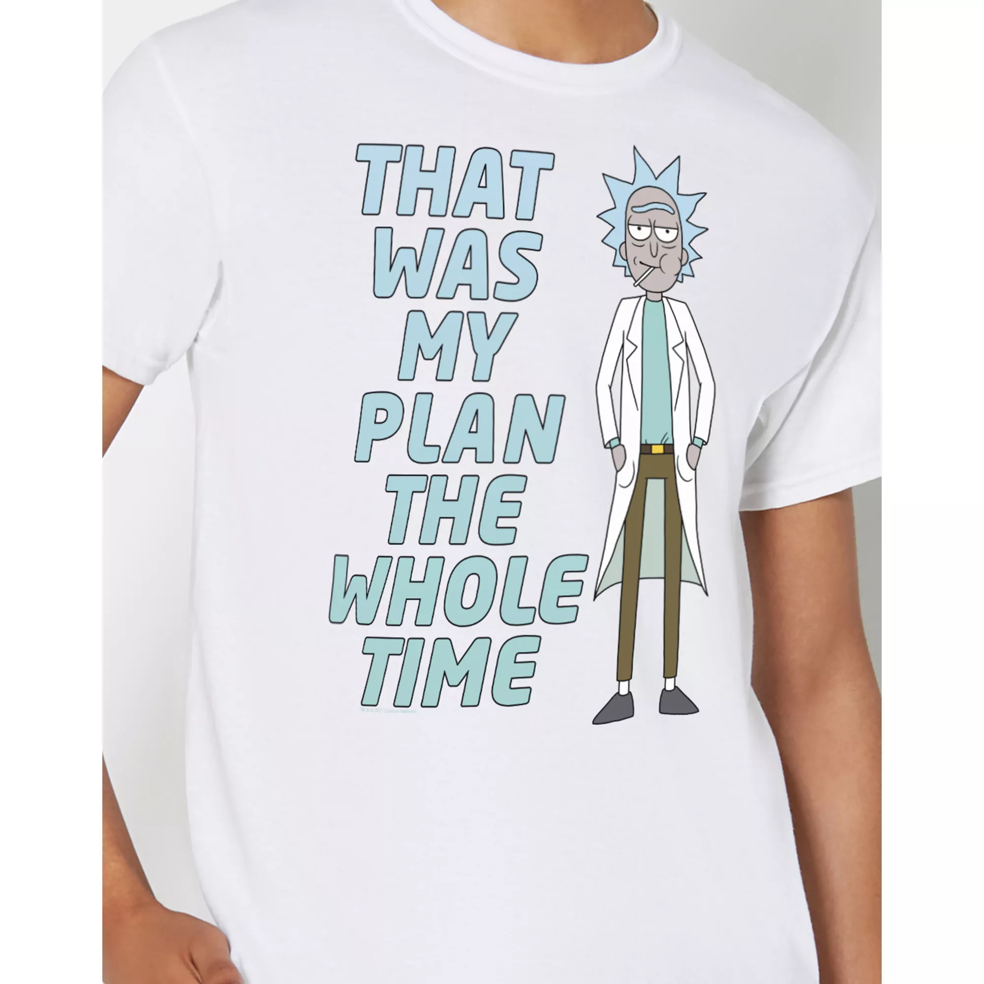 Make everyone laugh when they see you in this official Rick and Morty Rick's Plan t shirt! This funny graphic tee is the perfect addition to your casual wardrobe and a must-have for any fan.