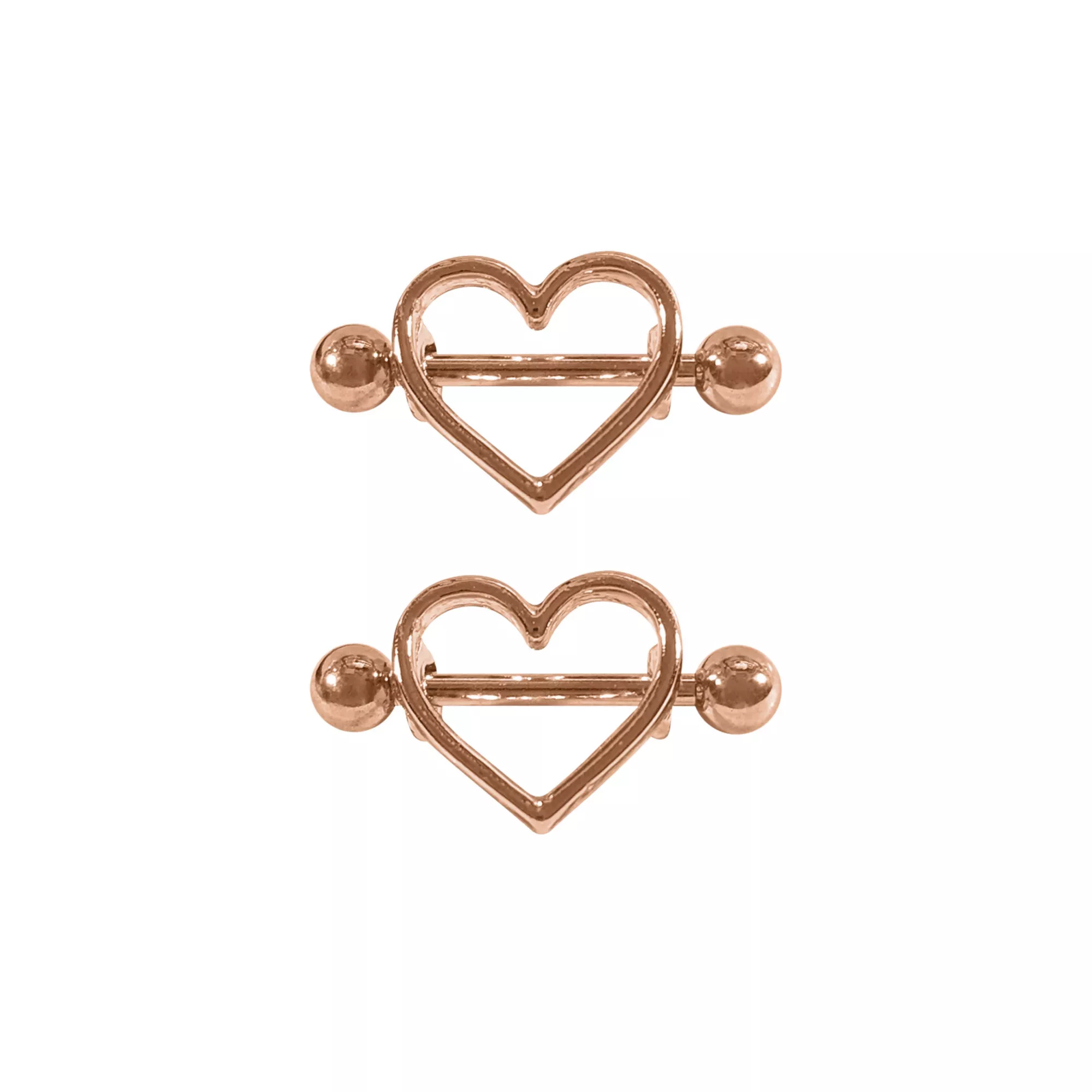 Rose Goldplated Heart Nipple Shields - 14 Gauge