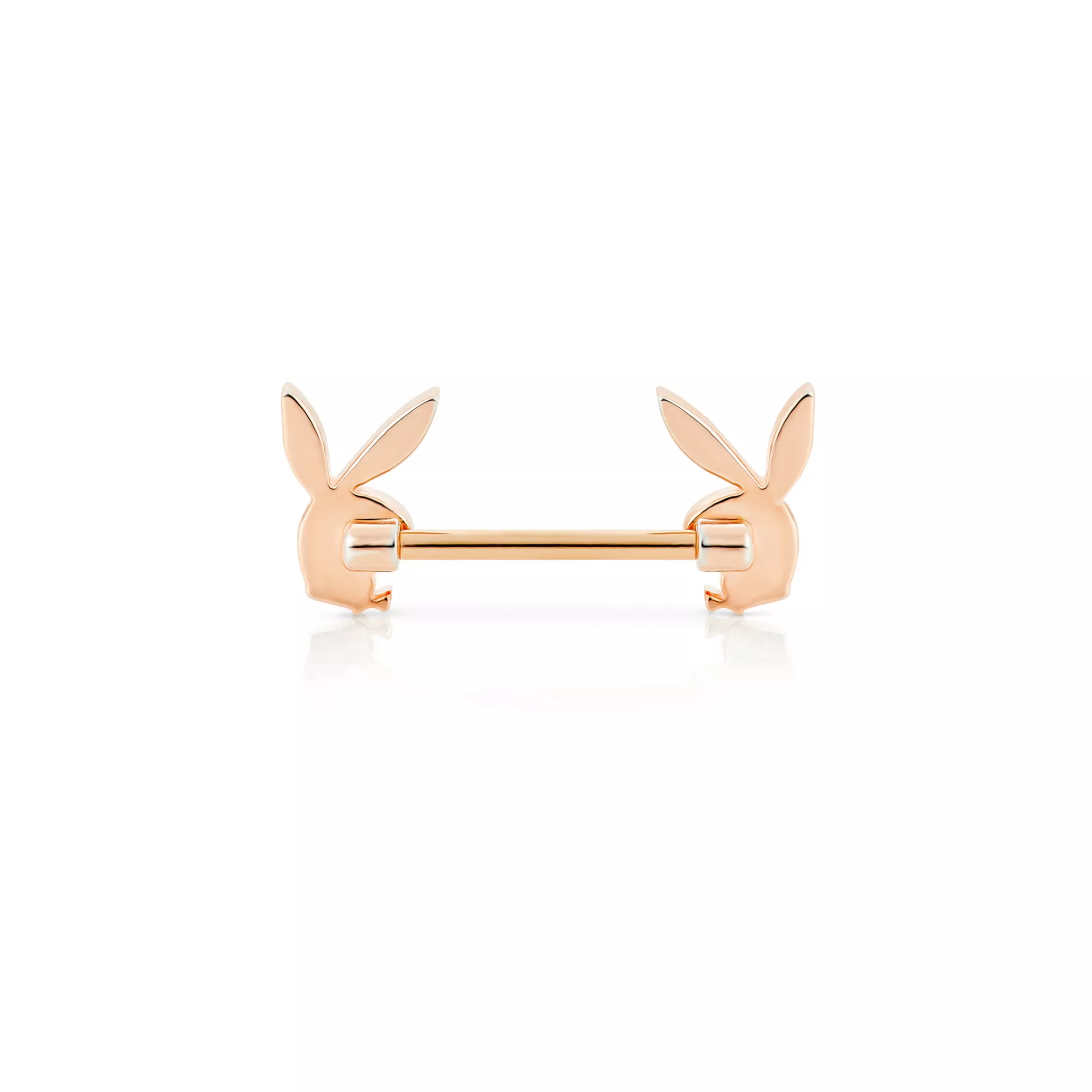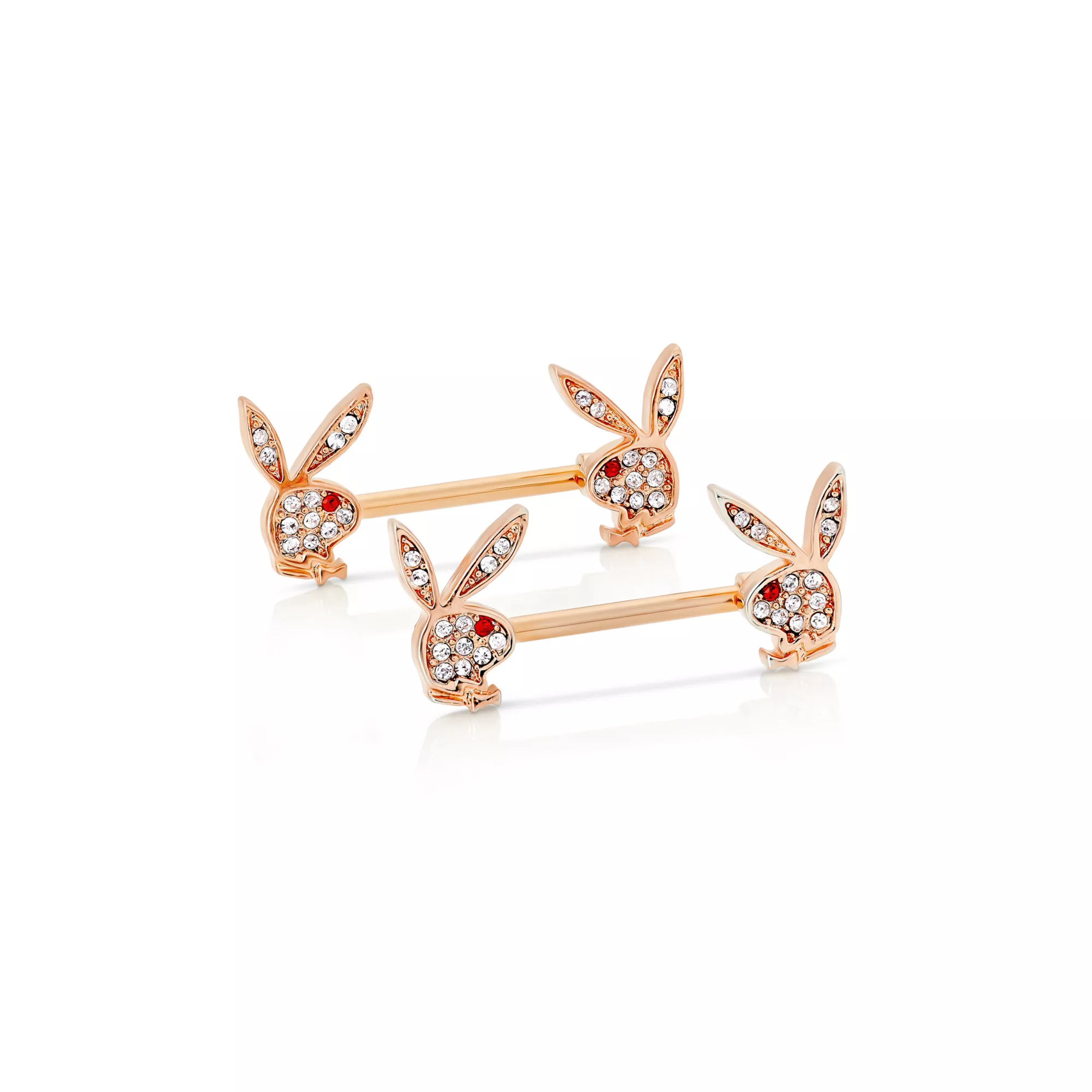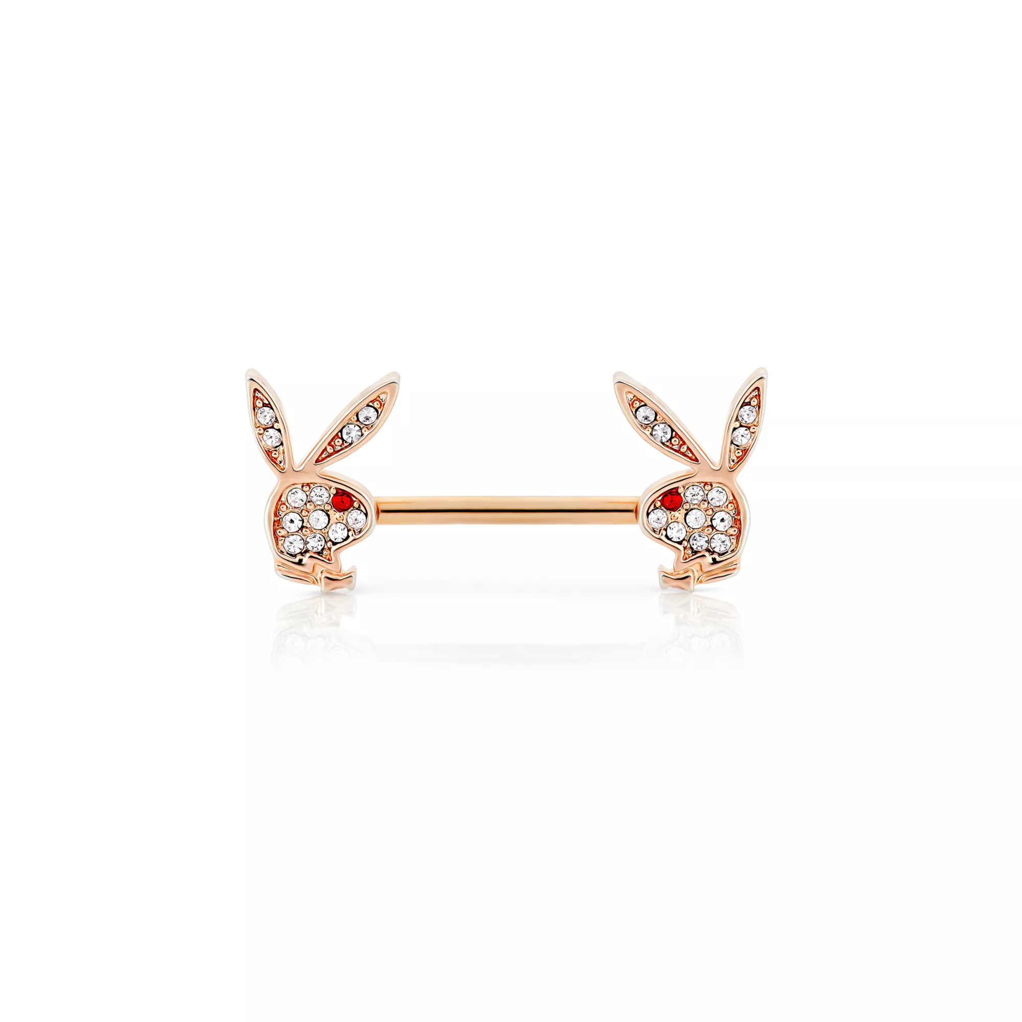Rose Goldtone Clear CZ Playboy Bunny Nipple Barbells