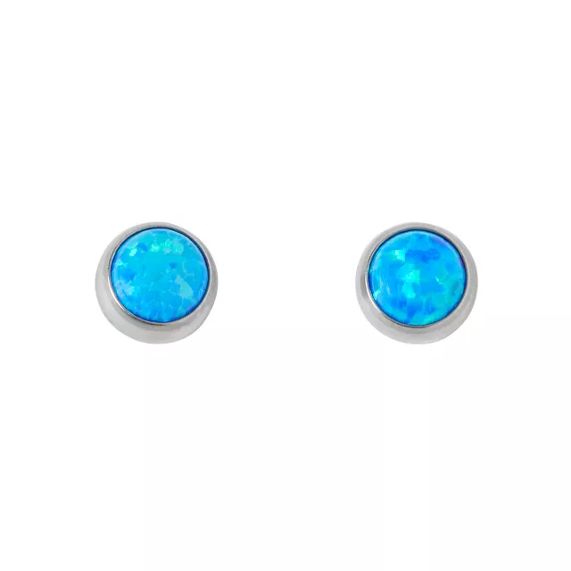 Round Blue Faux Opal Stud Earrings - 20 Gauge