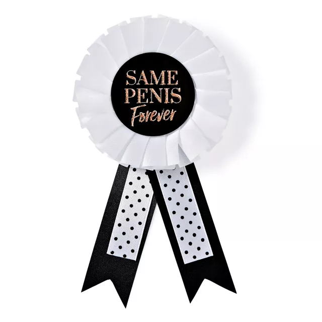 Let everyone know that you're the bachelorette when you rock this black and white "same penis forever" ribbon pin! You'll be sure to have a great time on your last night out as a single lady.
