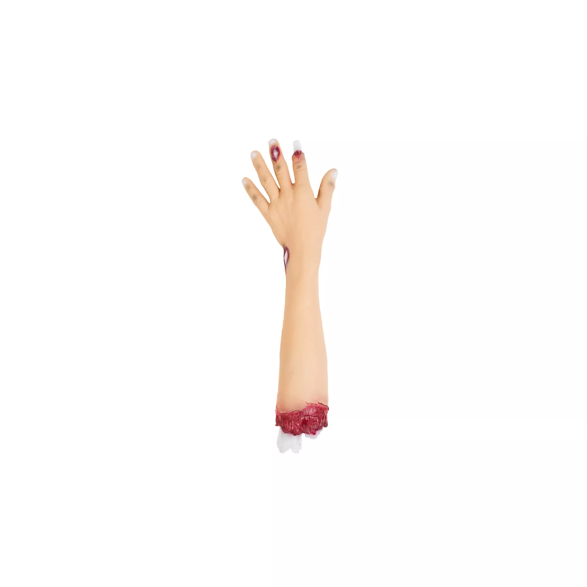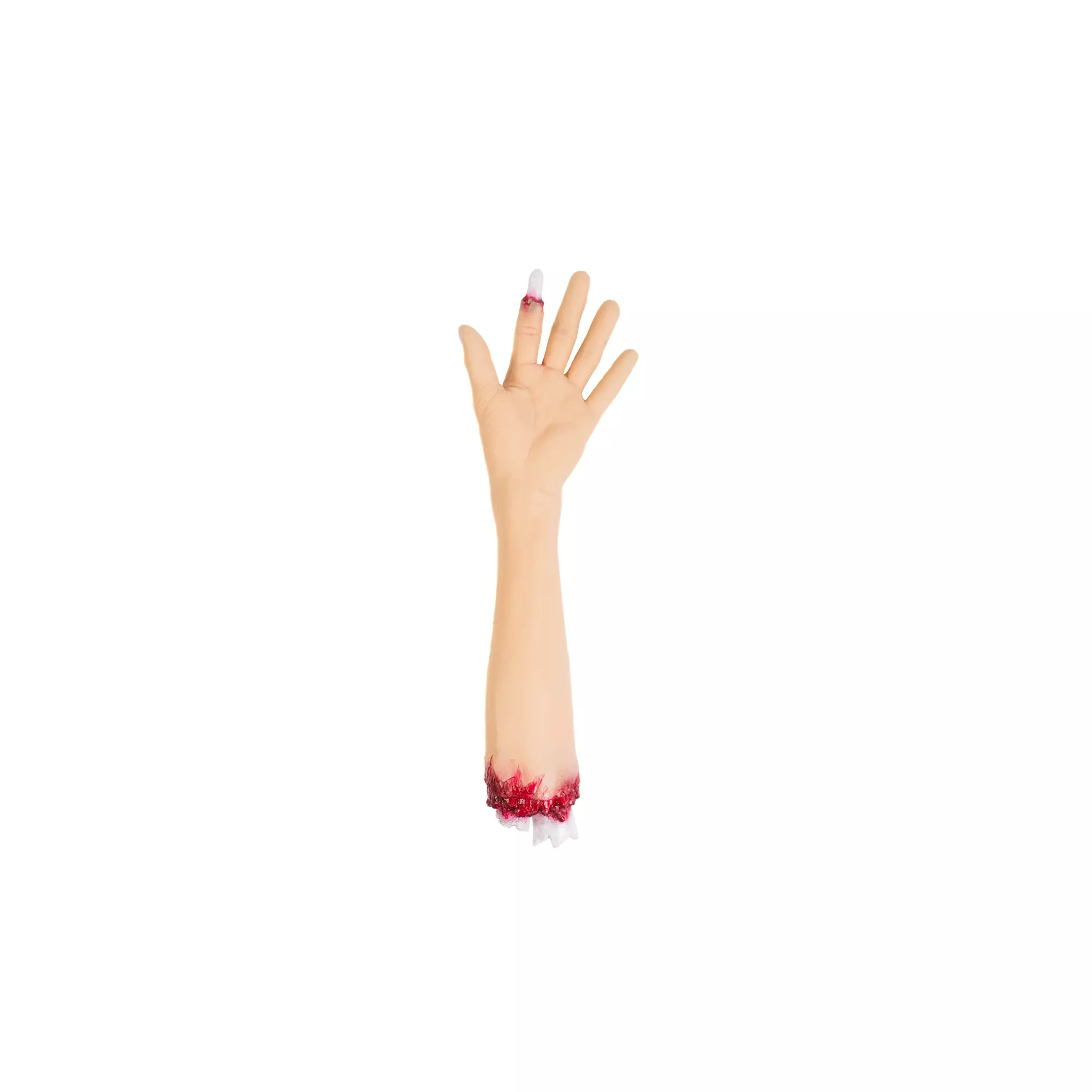 Stop your guests in their tracks with this severed arm decoration! Featuring fake blood and exposed bone details, this fleshy prop is a Halloween must-have.