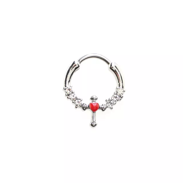 Silver-Tone Loving Cross Clicker Septum Ring - 16 Gauge