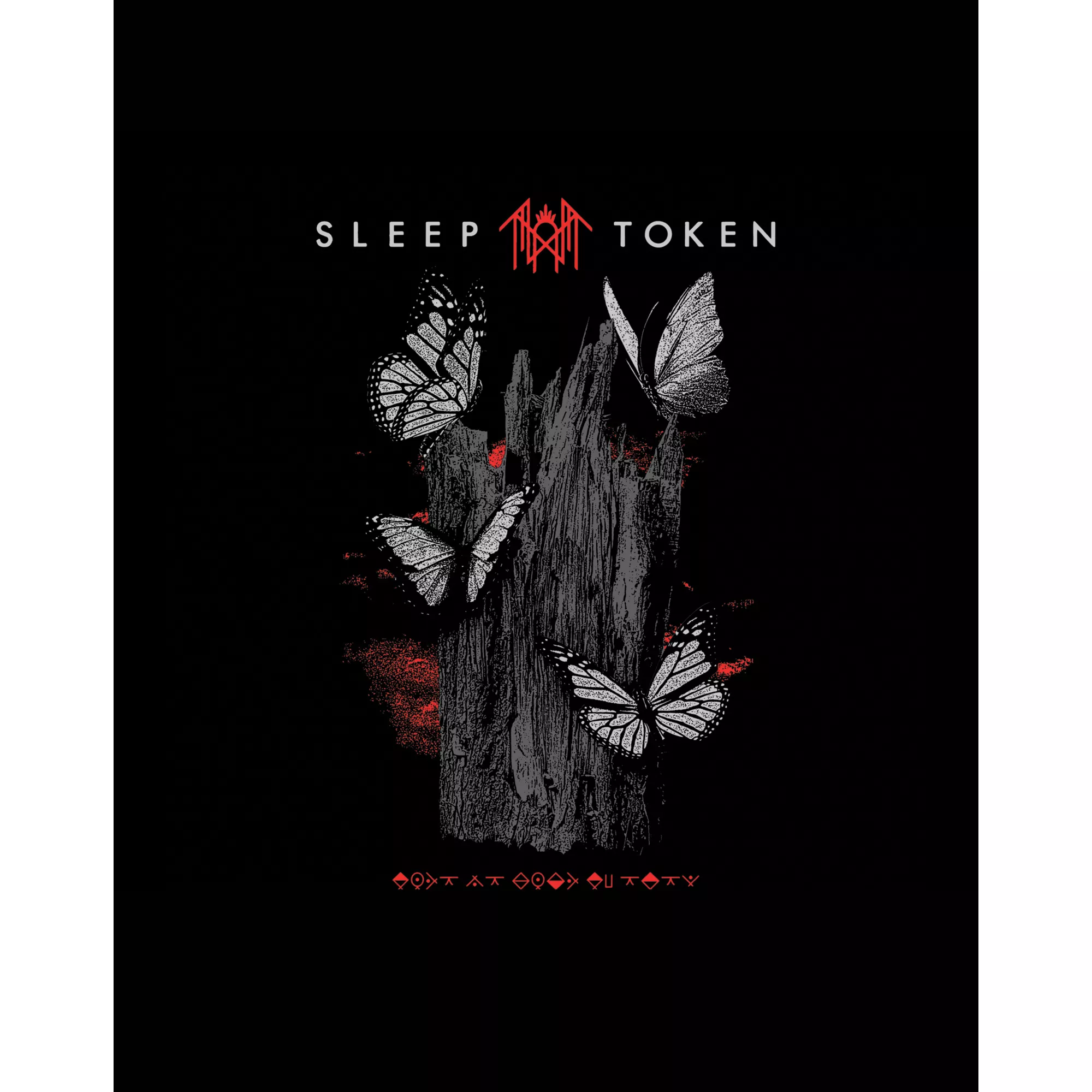 Show off your fandom with this official Sleep Token Tour Butterfly T Shirt! This stylish black graphic tee is perfect for anyone who can't get enough of Sleep Token's music!