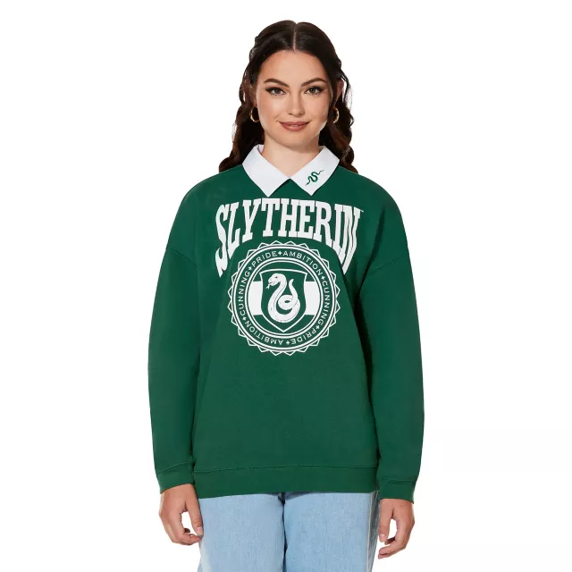 Hoping to become a wizard-in-training? You'll be casting spells in no time when you wear this officially licensed Slytherin Collared Crewneck. Show love for Harry Potter in style!