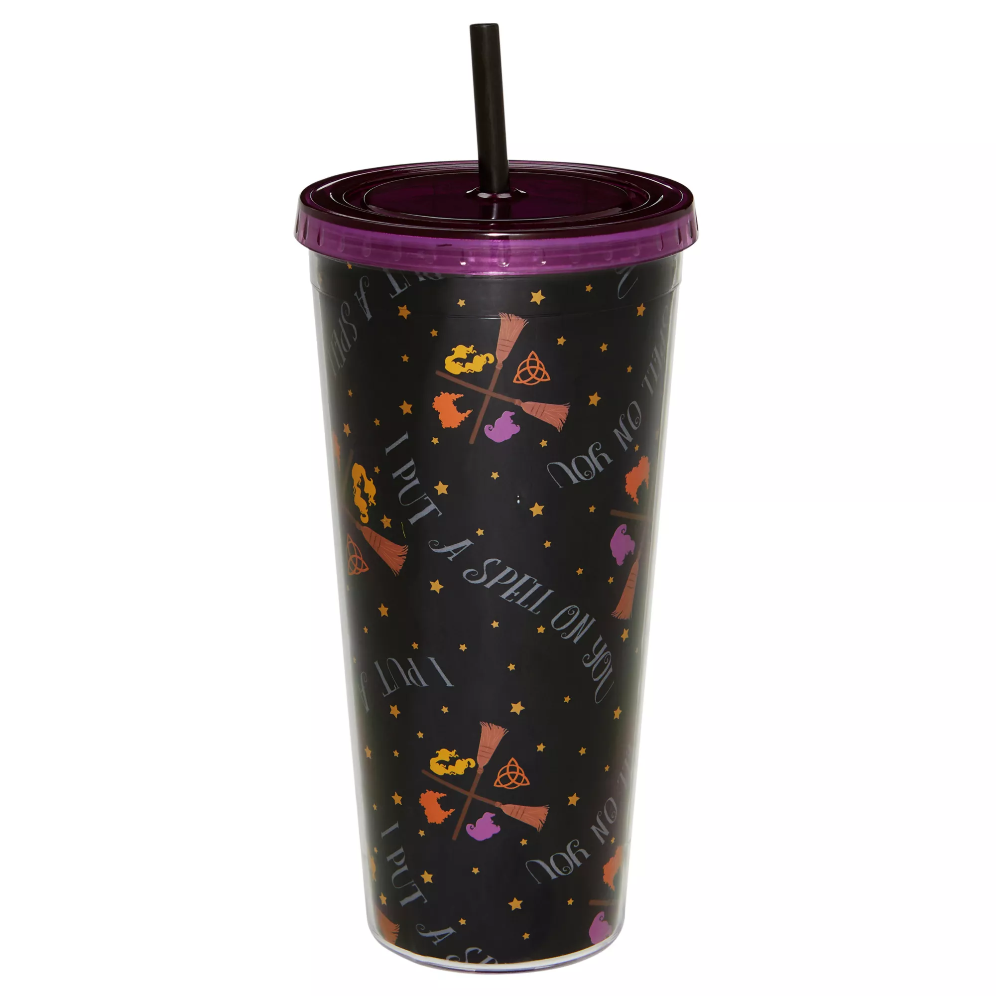Looking for a cup that you can bring on all of your magical adventures? This officially licensed Spell On You Cup is 20 ounces and features a design that any Hocus Pocus fan will love! It also includes a lid and straw, making it easy to take on the go.