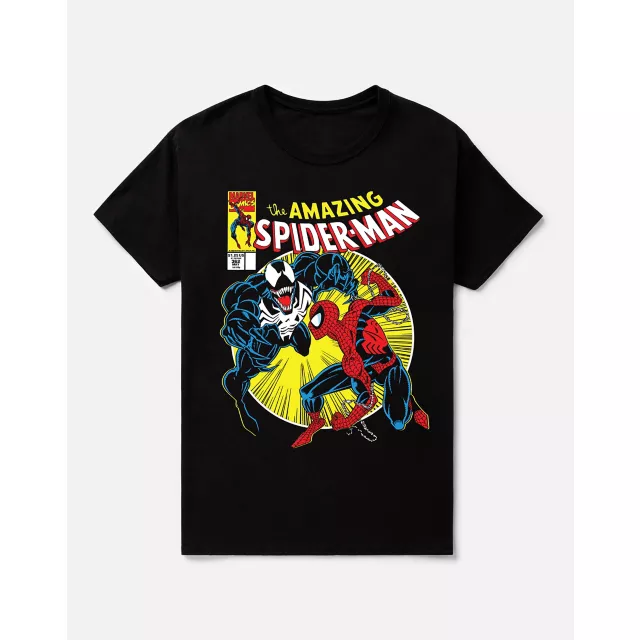 Everyone will know what you're binging when you show off your taste in comics with this officially licensed Spider-Man Versus Venom T Shirt! Suit up in this stylish tee and you'll always be showing your fandom.