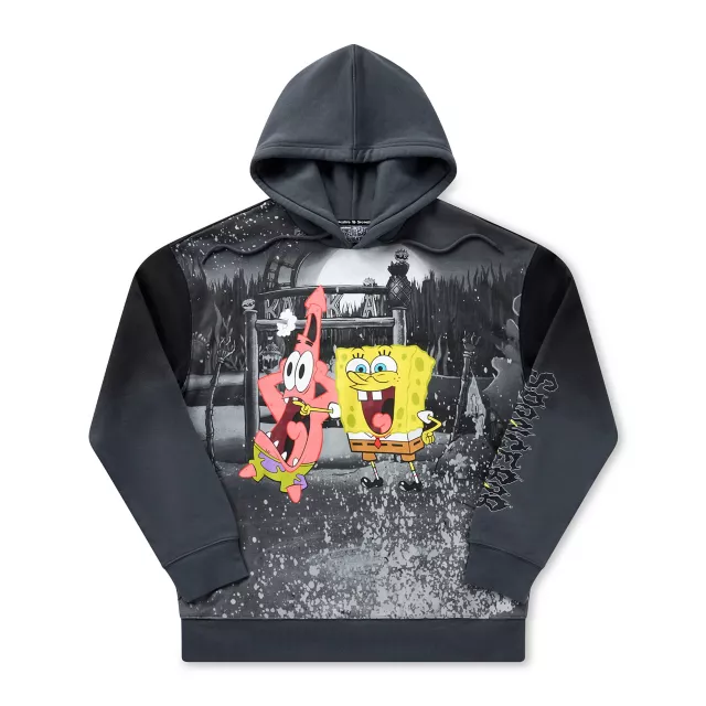 Dive into the dark side of Bikini Bottom with this adventure-ready hoodie! Featuring SpongeBob and Patrick against a haunting backdrop, this design is perfect for fans who love all things spooky. This oh-so-cozy hoodie is perfect for any fan looking to show off their fandom with the most iconic underwater duo.