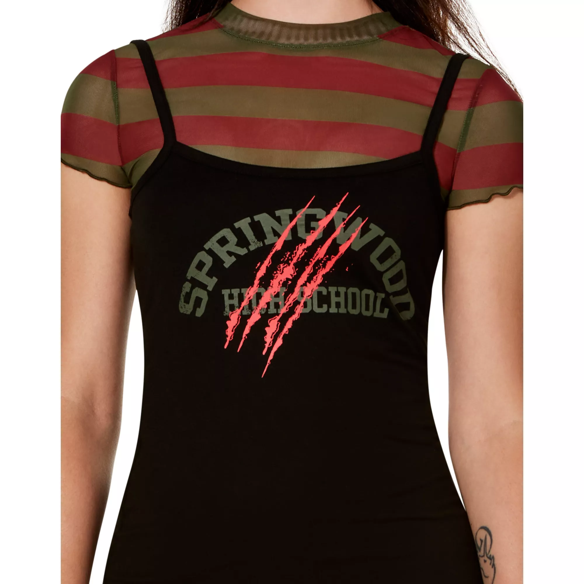 One, two, Freddy's coming for you... If you're a student at Springwood High School, chances are Freddy Krueger is going to make your life a nightmare. Celebrate the legendary horror villain in style when you wear this officially licensed dress!