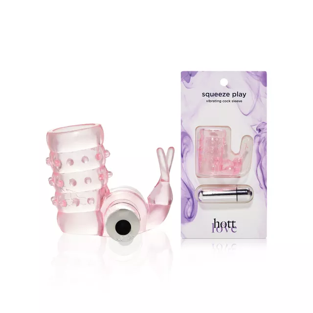 NEW & IMPROVED! Take your ecstasy higher and higher with the Hott Love Squeeze Play Vibrating Cock Sleeve. Rabbit sex toys aren't only for the ladies; this one is for both of you! With its comfortable and flexible surface, it will provide you with amazing stimulation while also giving her major clitoral stimulation. It's also extremely quiet, so what you do with it is your secret. You get double the pleasure in one toy! Try it and see just how much pleasure this penis sleeve can bring you both.