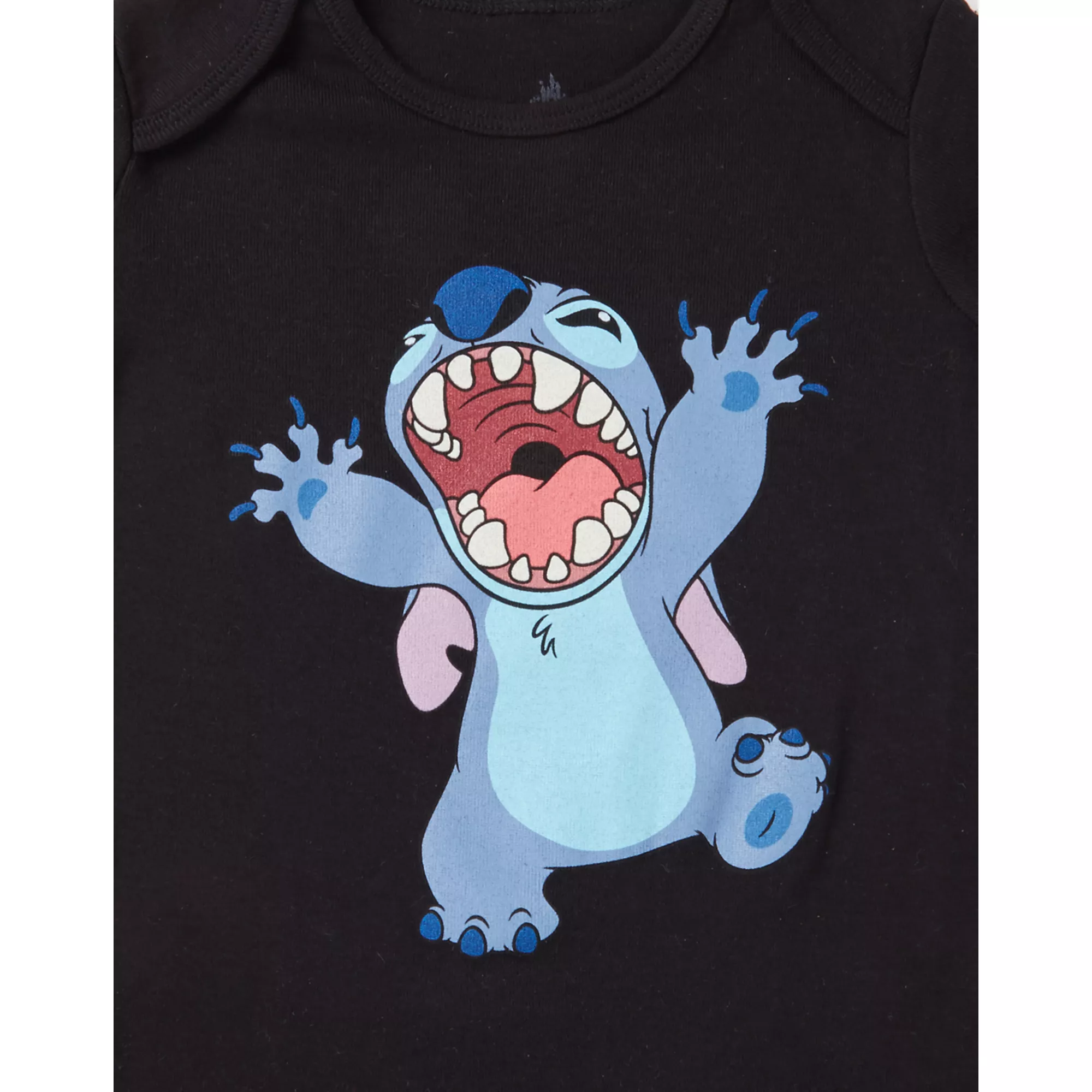 It's never too early to make your child a Disney fan! Whether your baby throws tantrums like Experiment 626 or they just love Lilo & Stitch in general, this adorable Stitch baby bodysuit will look absolutely adorable on them! This all-black bodysuit features Stitch throwing up his hands and yelling, but still looks cute enough for any little Disney fan.